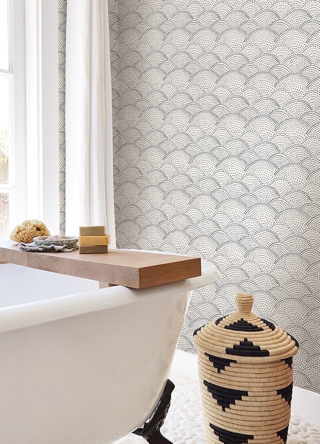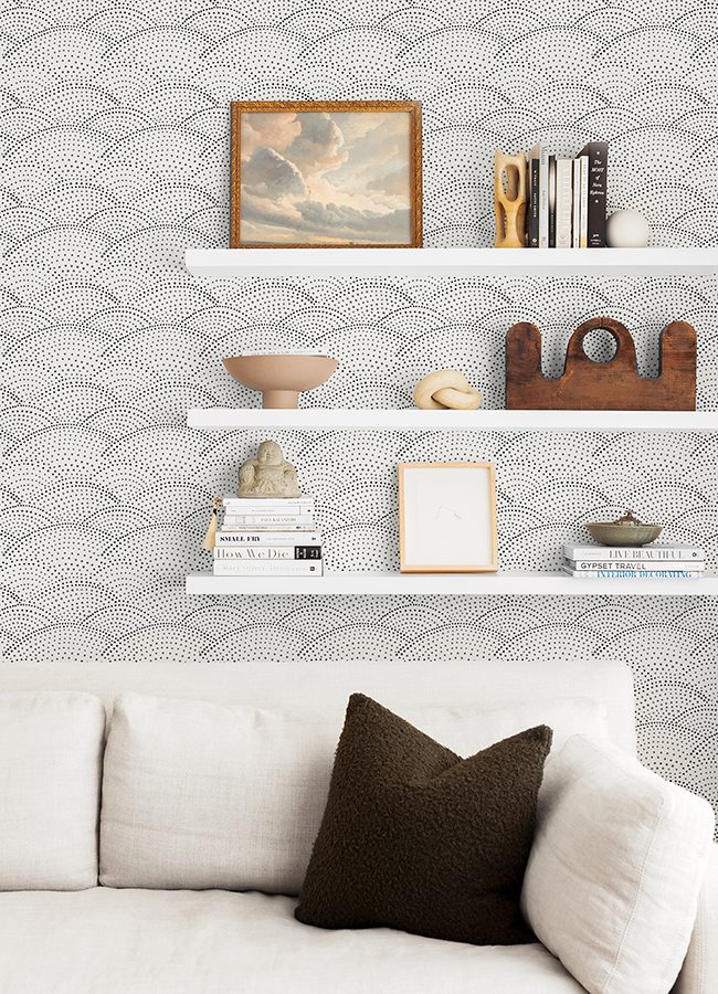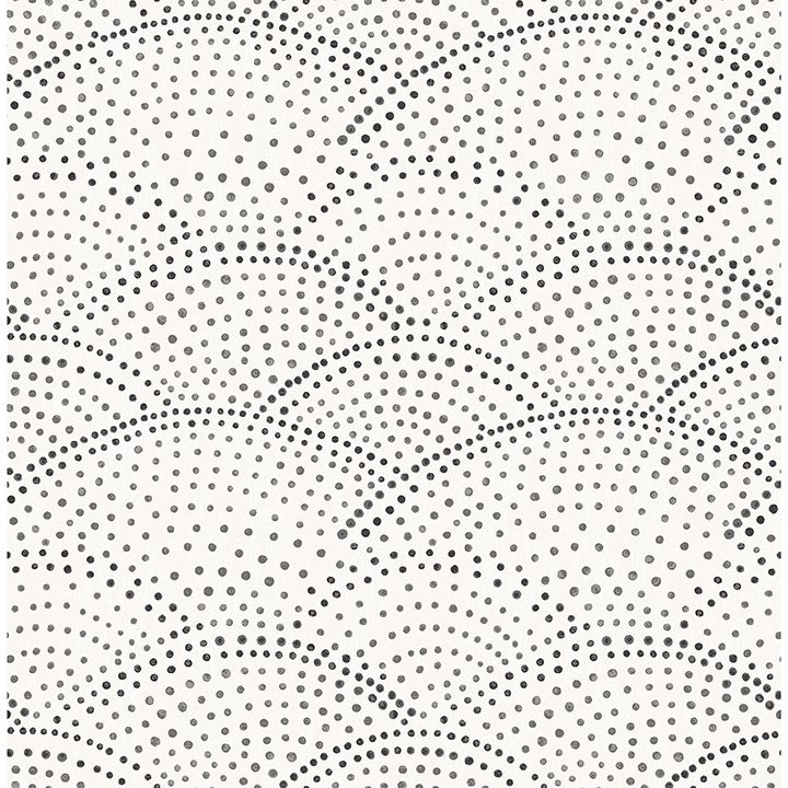 Peel and stick NuWallpaper with a black and white textured dot print.