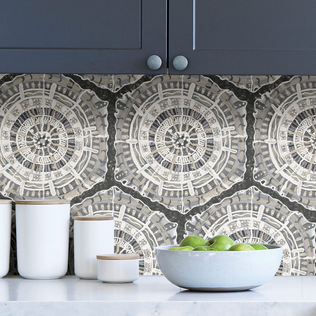 Grey hand-drawn geometric peel and stick wallpaper by Lisa Whittington