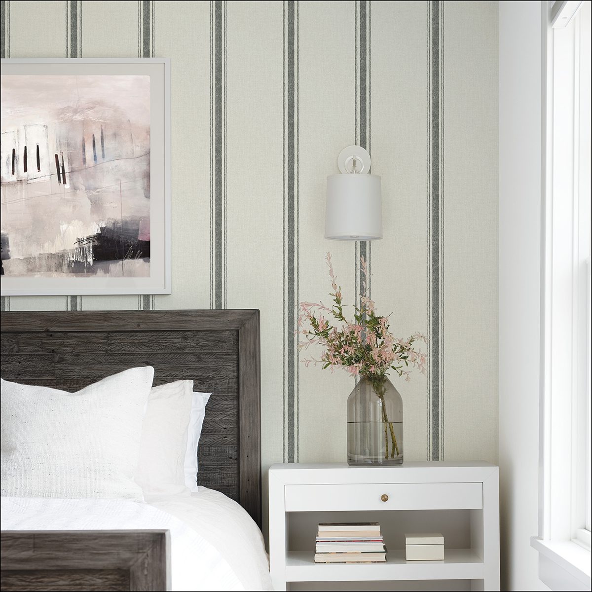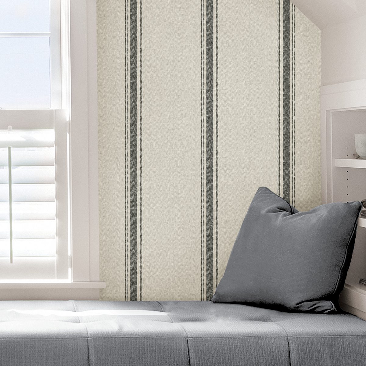 Country inspired peel and stick wallpaper with a woven look