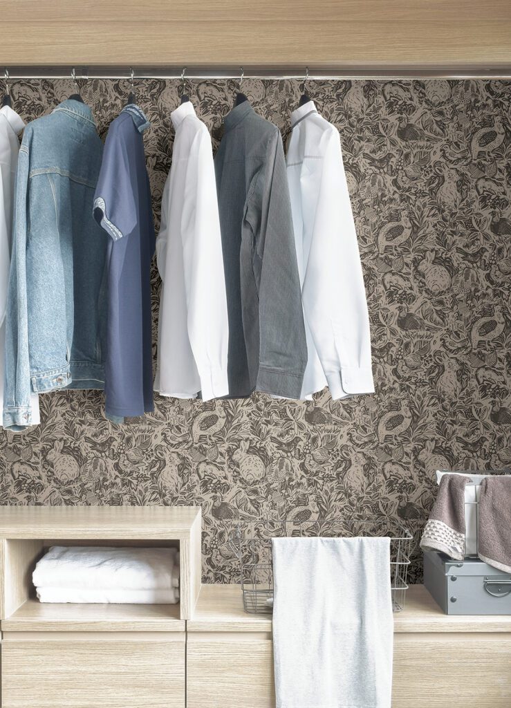 Grey woodland peel and stick wallpaper