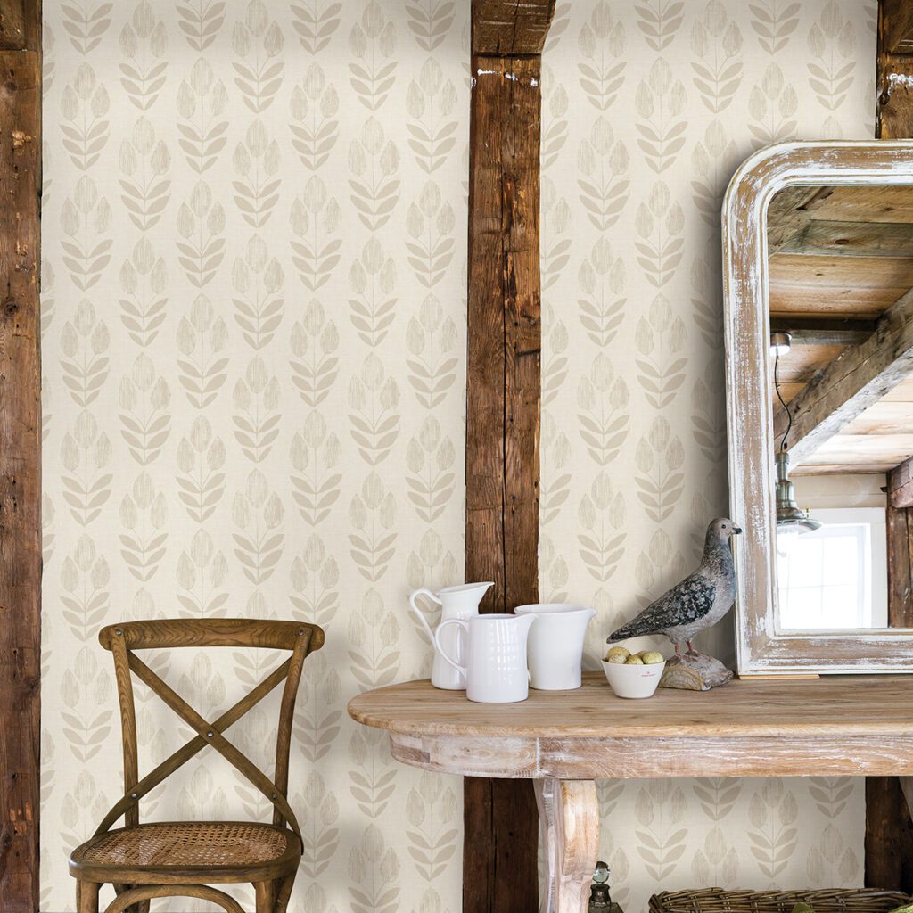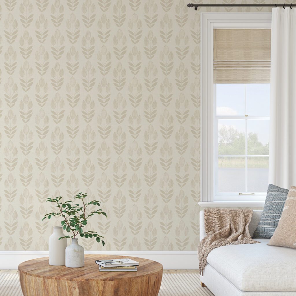 Add a Scandinavian flair to your space with this block tulip design. Its grey pattern is printed on an off-white backdrop for a refined yet cozy look.