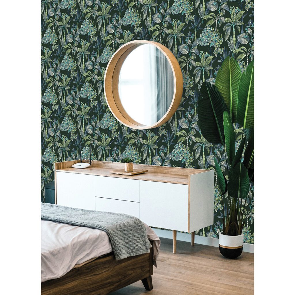 Blue and green tropical peel and stick wallpaper