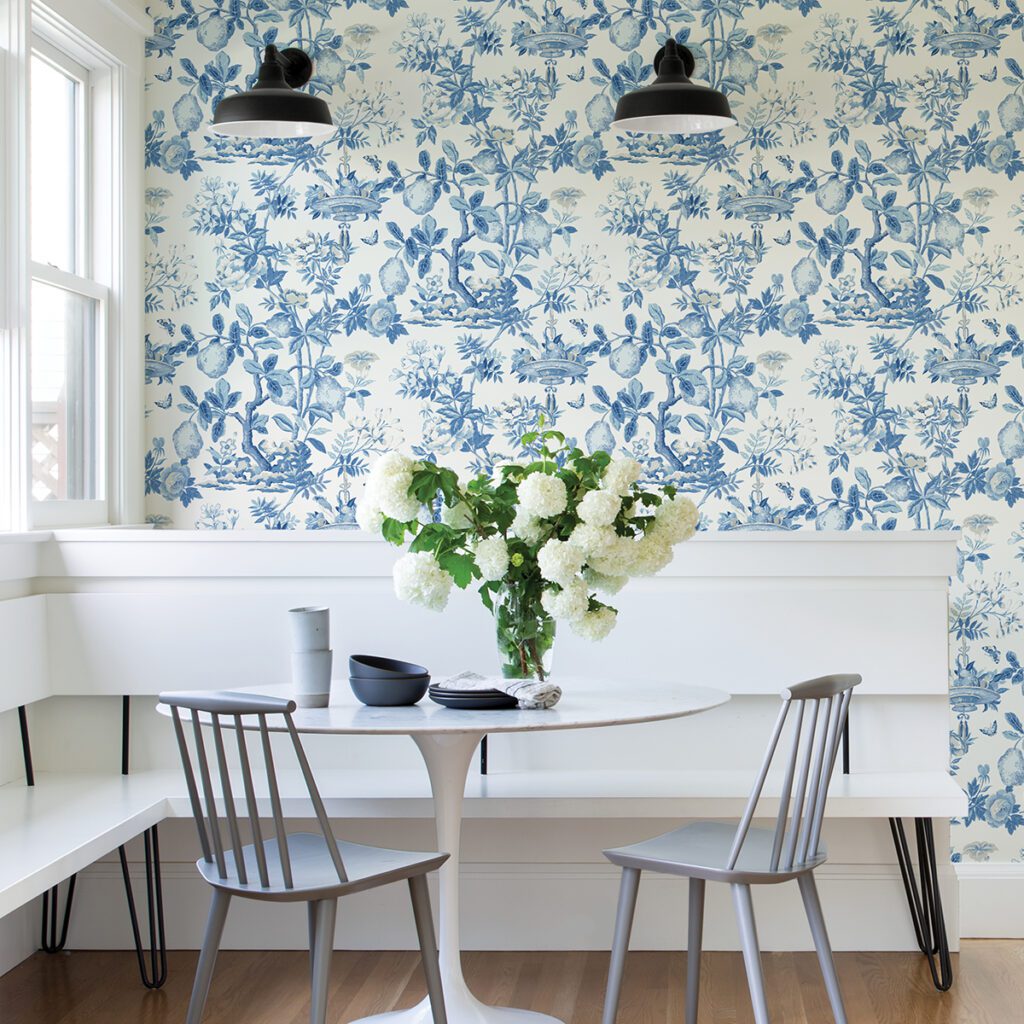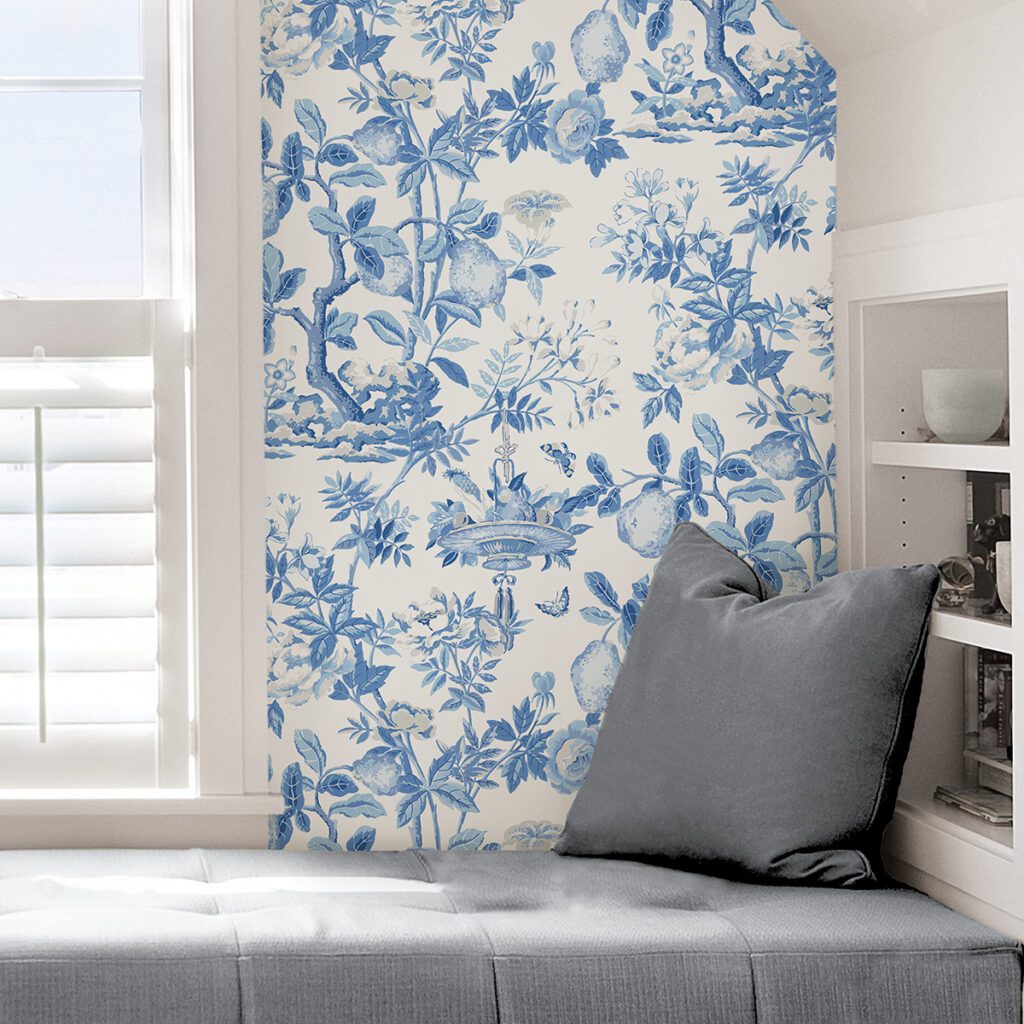 Blue Zen garden Signature Scalamandré Series peel and stick wallpaper by NuWallpaper