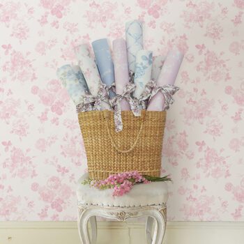 Vintage-inspired pink floral peel and stick wallpaper from LoveShackFancy