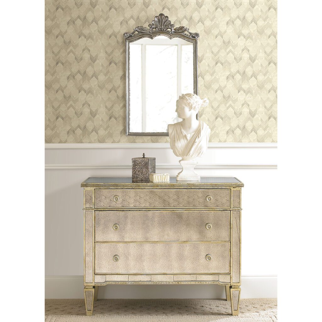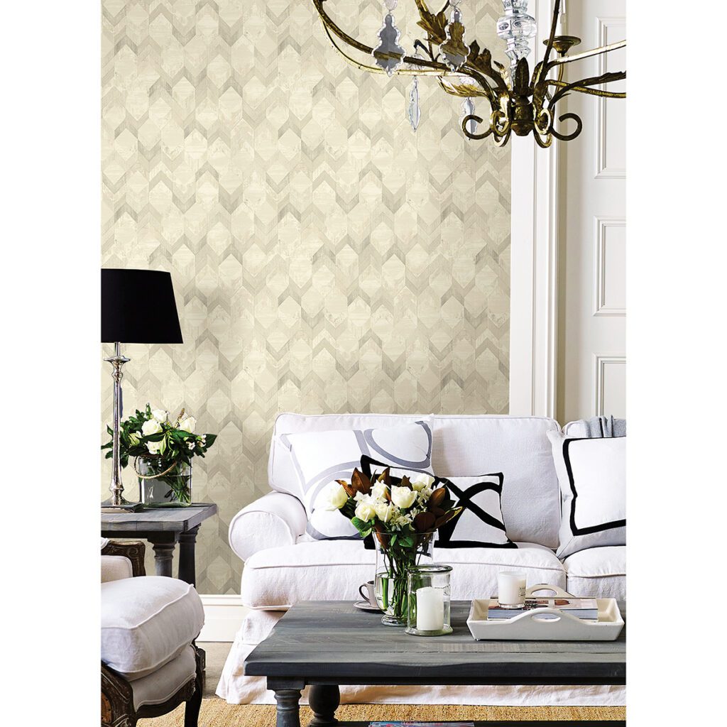 Gold chevron peel and stick wallpaper designed by Rachel Zoe