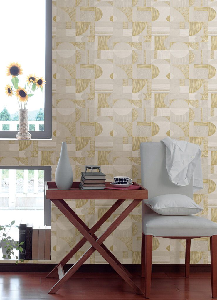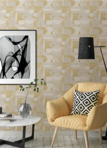 Metallic peel and stick wallpaper featuring a modern geometric design