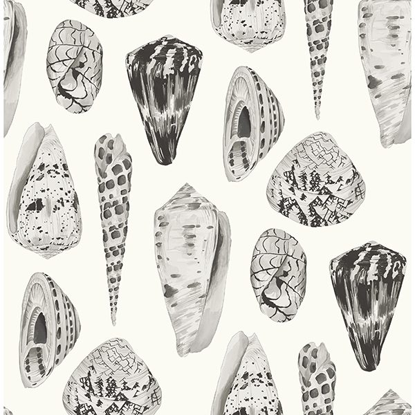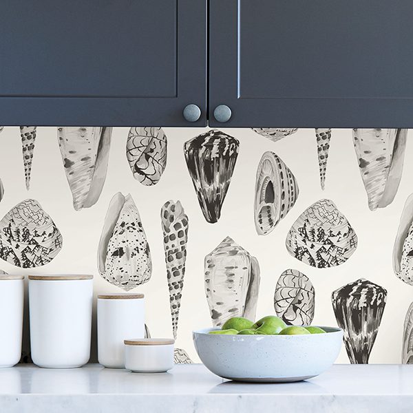 Grey seashells Signature Scalamandré Series peel and stick wallpaper by NuWallpaper