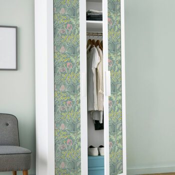 Peel and stick NuWallpaper with a green botanical design.