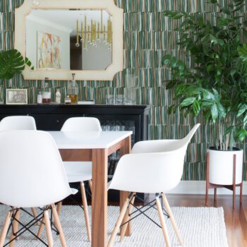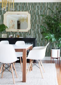 A green and orange brushstroke peel and stick wallpaper designed by Leah Duncan