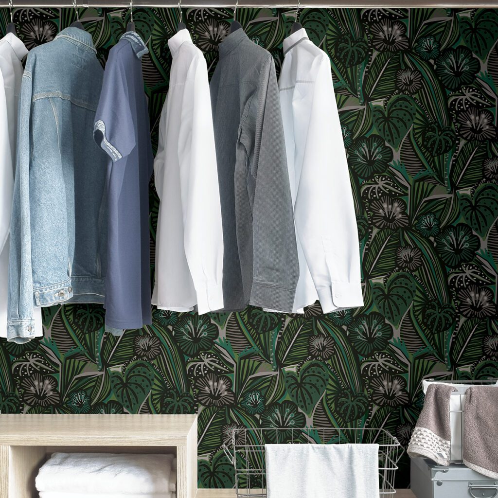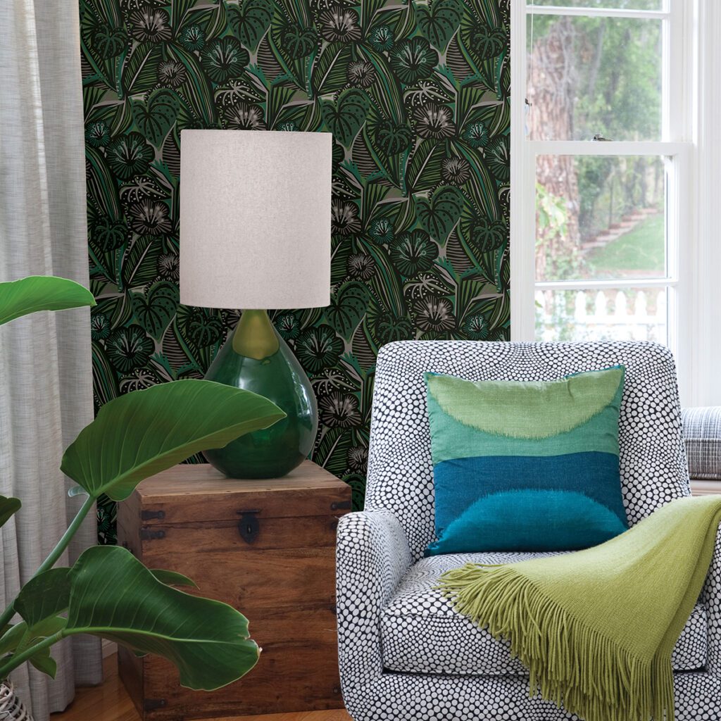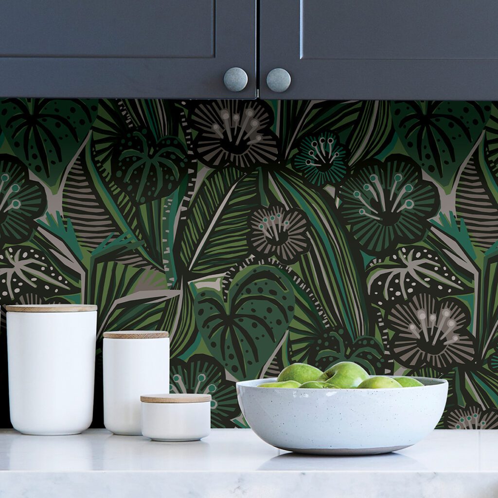 Green tropical botanical peel and stick wallpaper