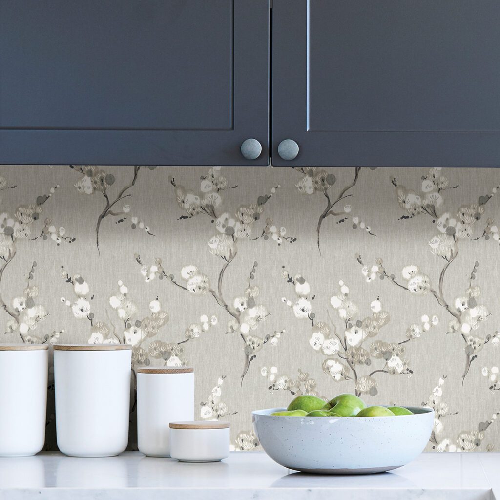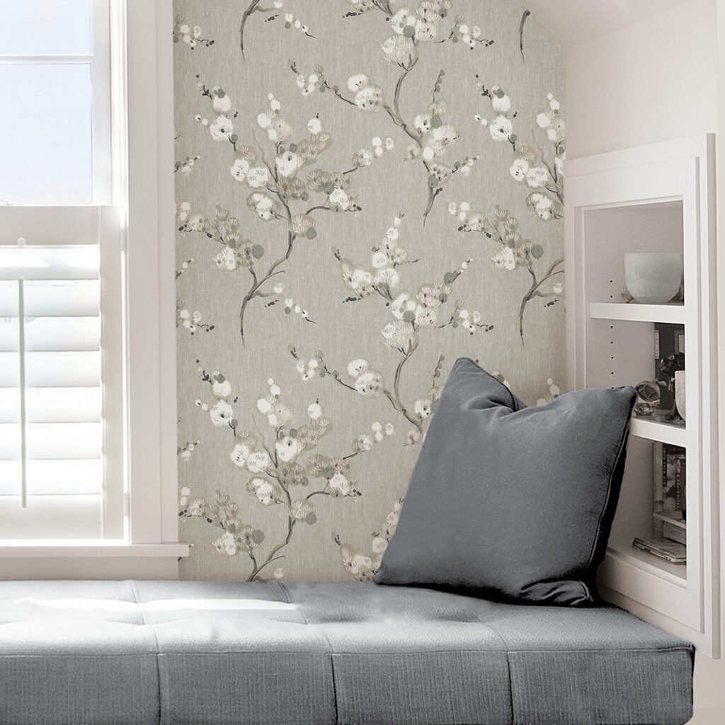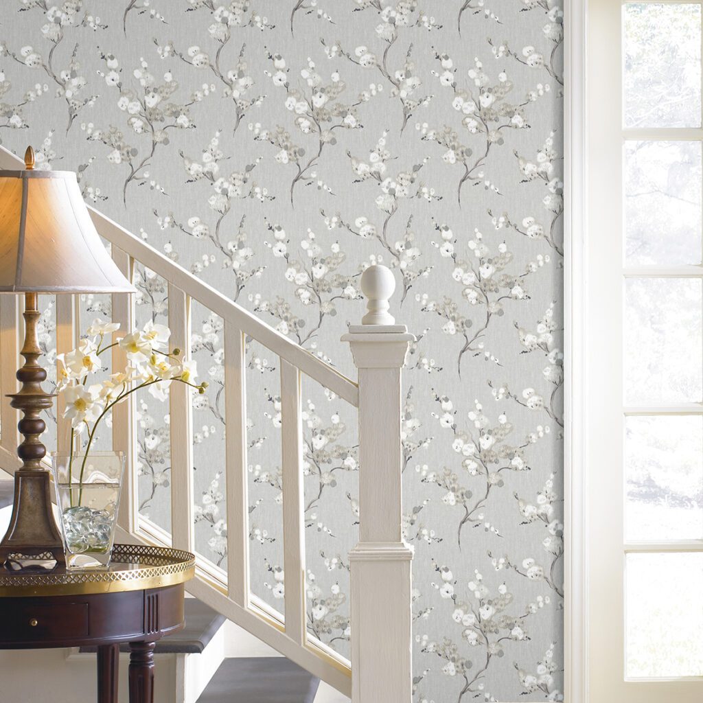 Modern and elegant grey floral peel and stick wallpaper