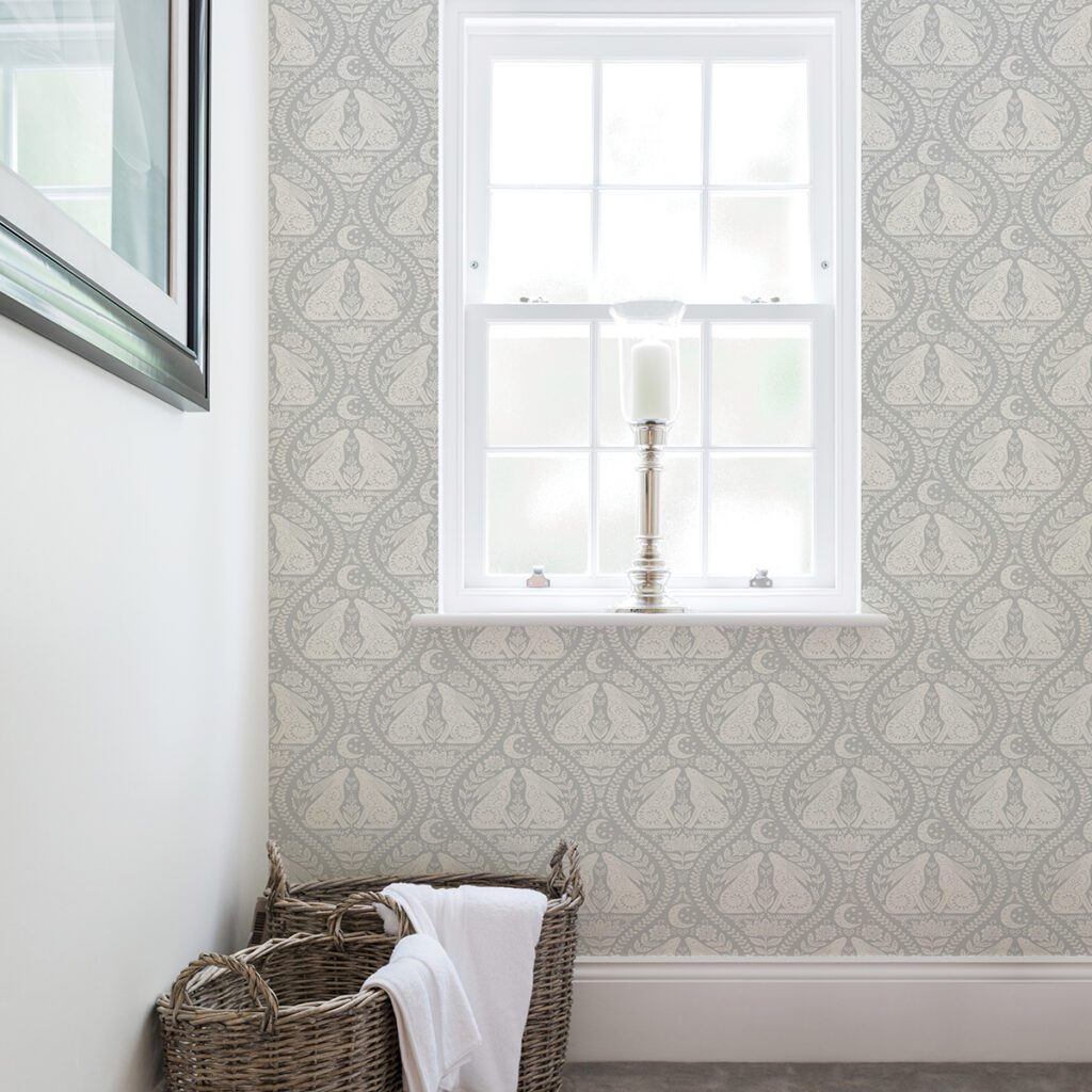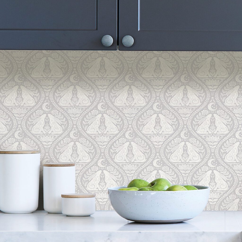Grey Scandi damask peel and stick wallpaper