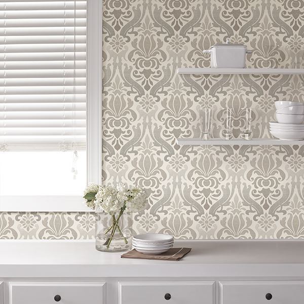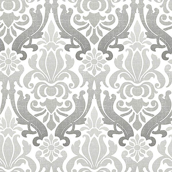 Make a dazzling entryway or chic feature wall with this stylish peel and stick wallpaper. A glamorous damask print donned in an elegant grey hue, makes this new décor option a fabulous choice for any space big or small. Printed on a premium substrate that is completely removable and will not damage walls, this perfect solution for refreshing your home saves you both the time and hassle of ordinary wallpaper.