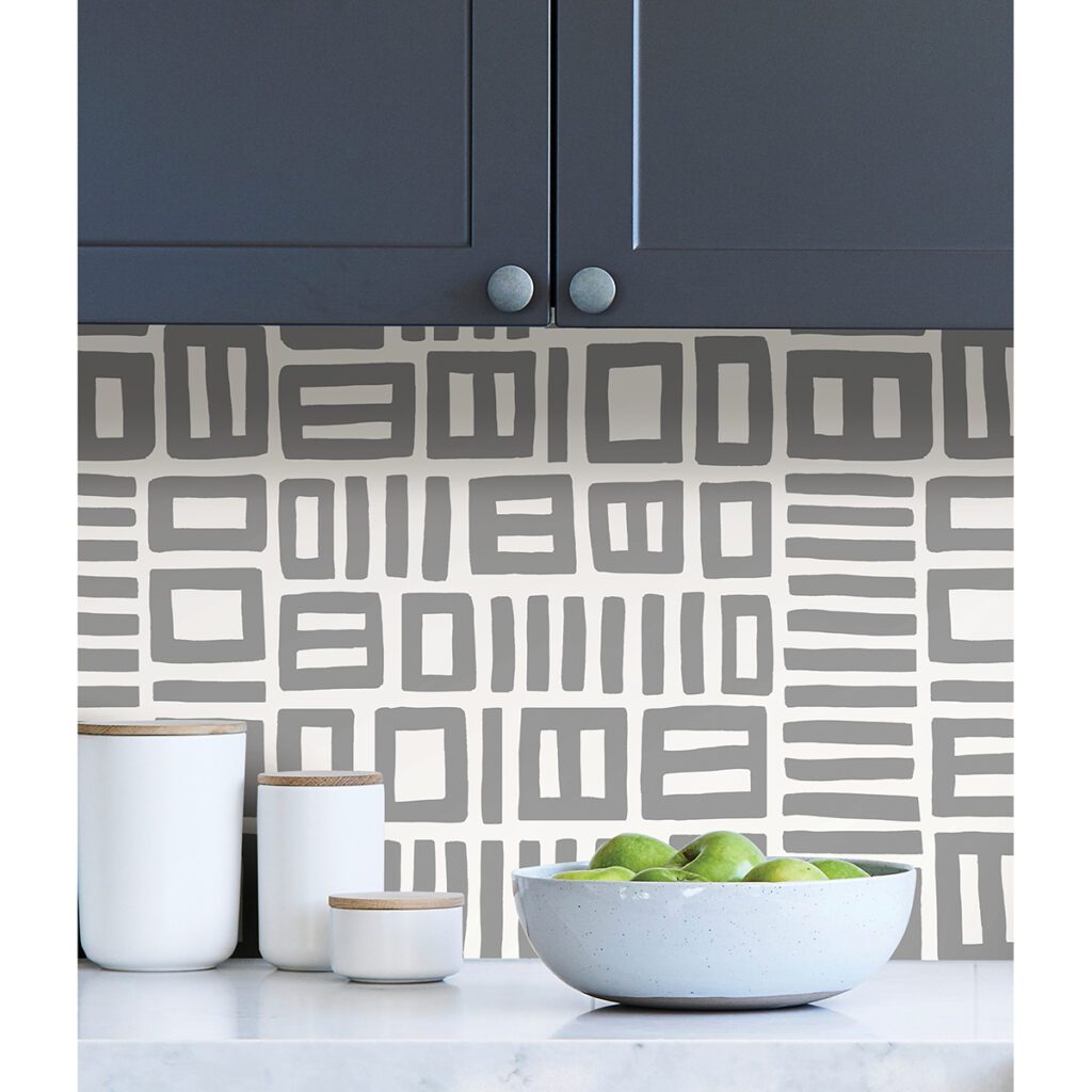Artistic grey and white geometric peel and stick wallpaper by Hadiya Williams