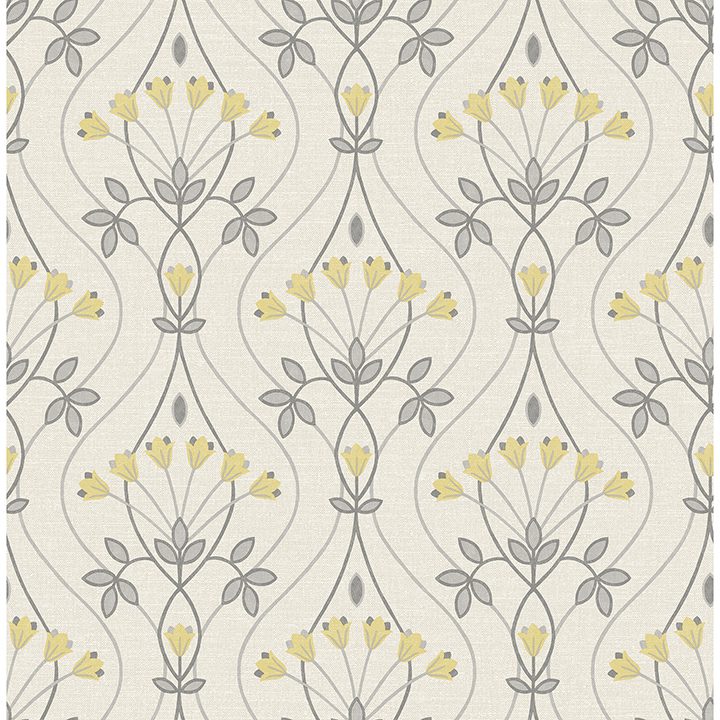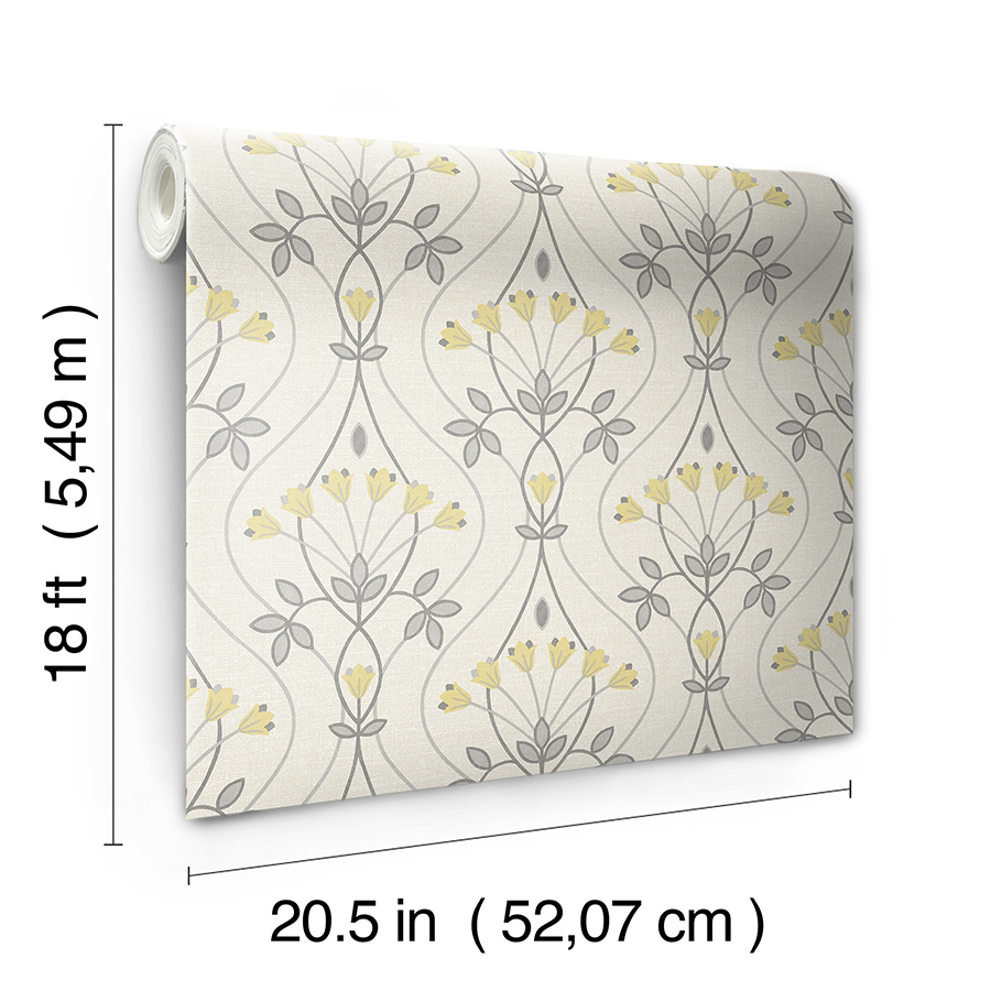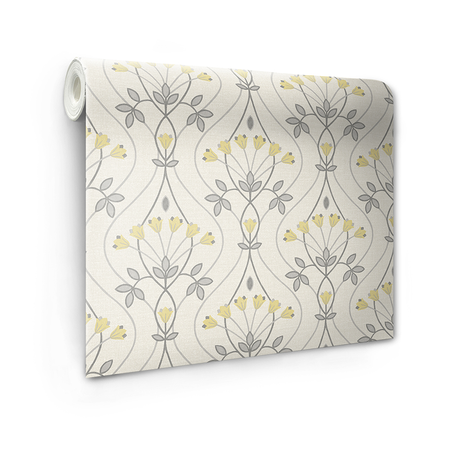 Peel and stick NuWallpaper with a yellow Scandinavian tulip ogee design.