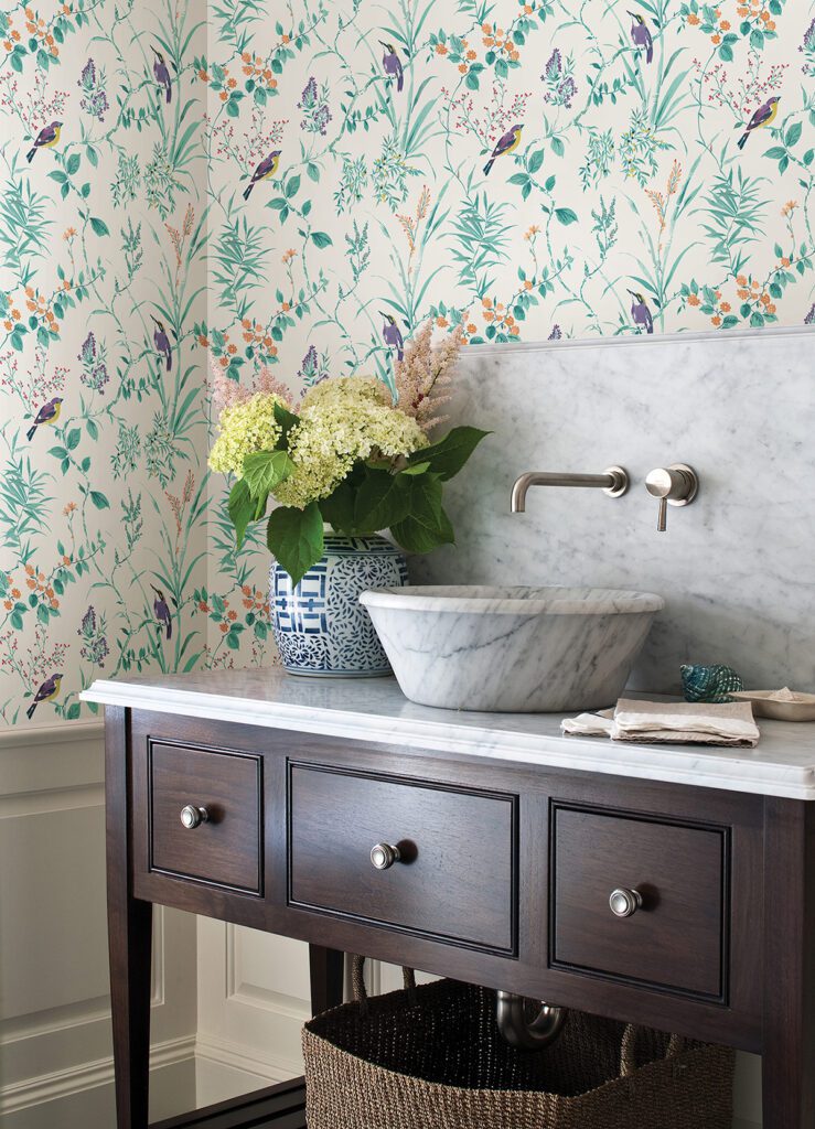 Jewel tone peel and stick wallpaper inspired by nature