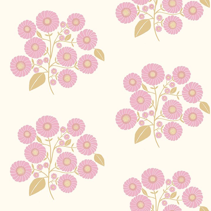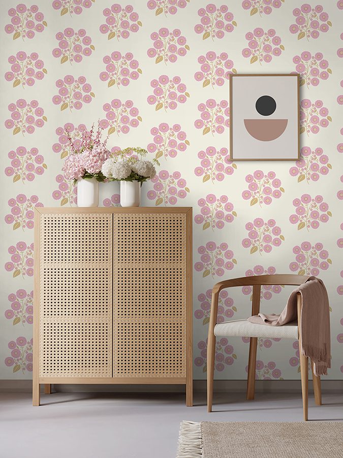 Pink and tan floral peel and stick NuWallpaper print designed by Jen Hewett