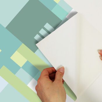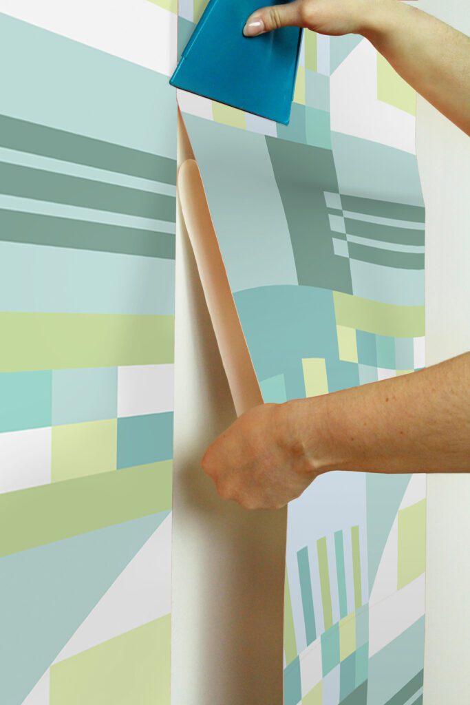 Cool tones form funky shapes in this peel and stick NuWallpaper by Aelfie