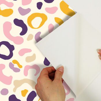 Pink, yellow and purple leopard spotted peel and stick NuWallpaper designed by Aelfie