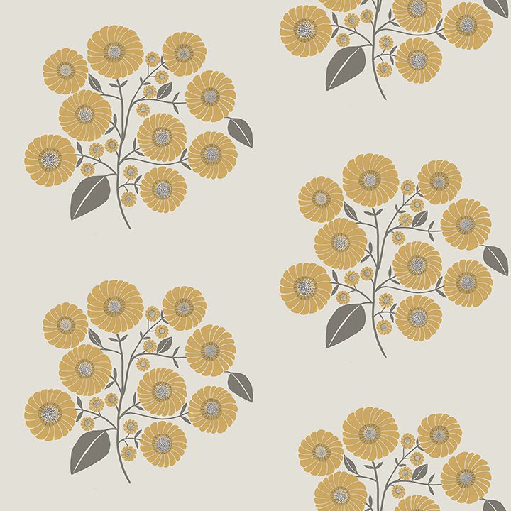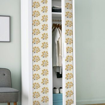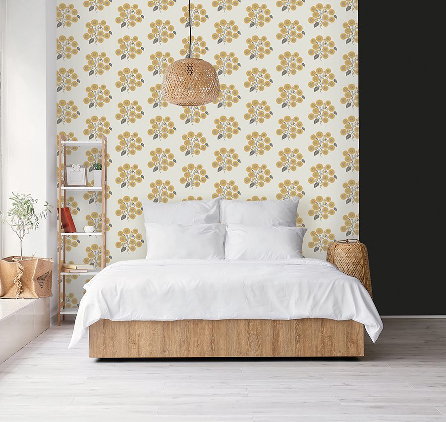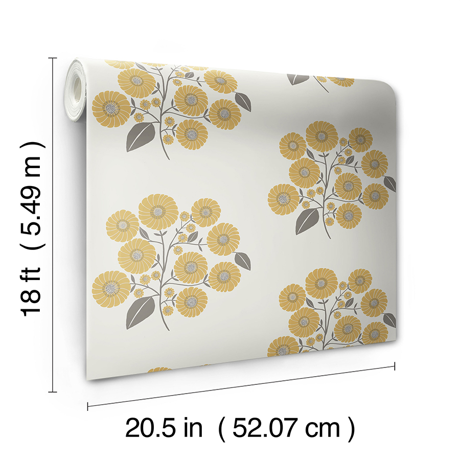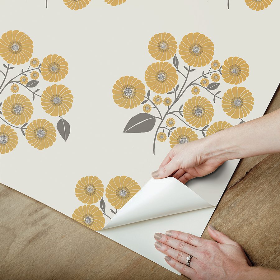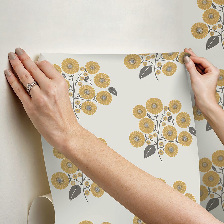 Yellow and white floral peel and stick NuWallpaper print designed by Jen Hewett