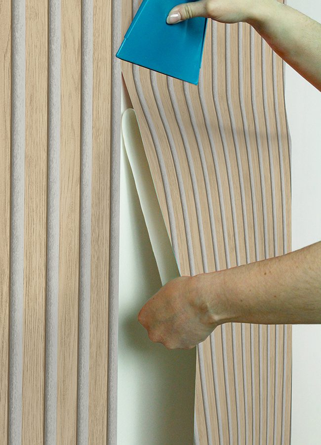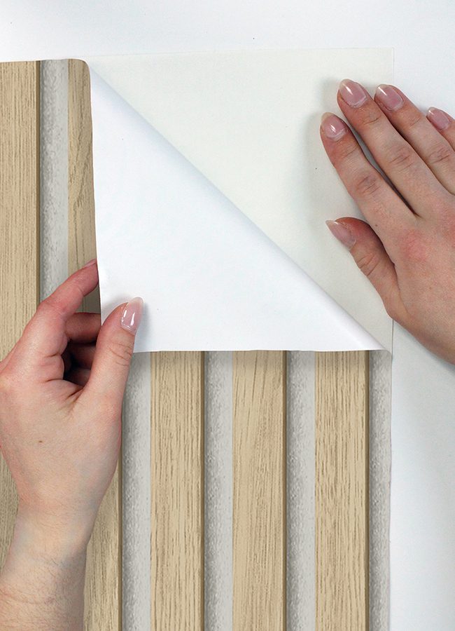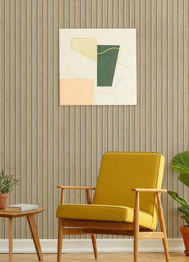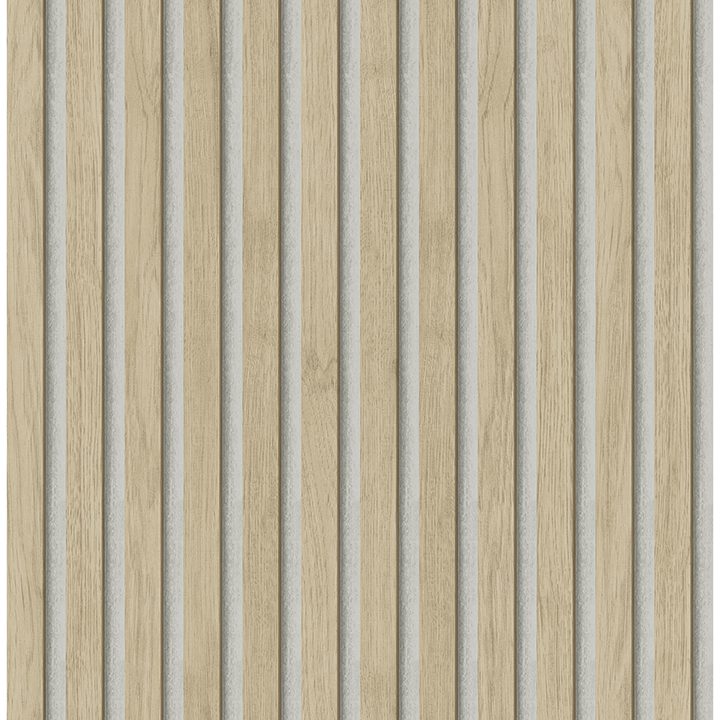 Renter-friendly and repositionable, this taupe and beige peel and stick NuWallpaper pattern features a wooden-slat design that looks like authentic wood! Natural wood slat pattern on peel and stick NuWallpaper.