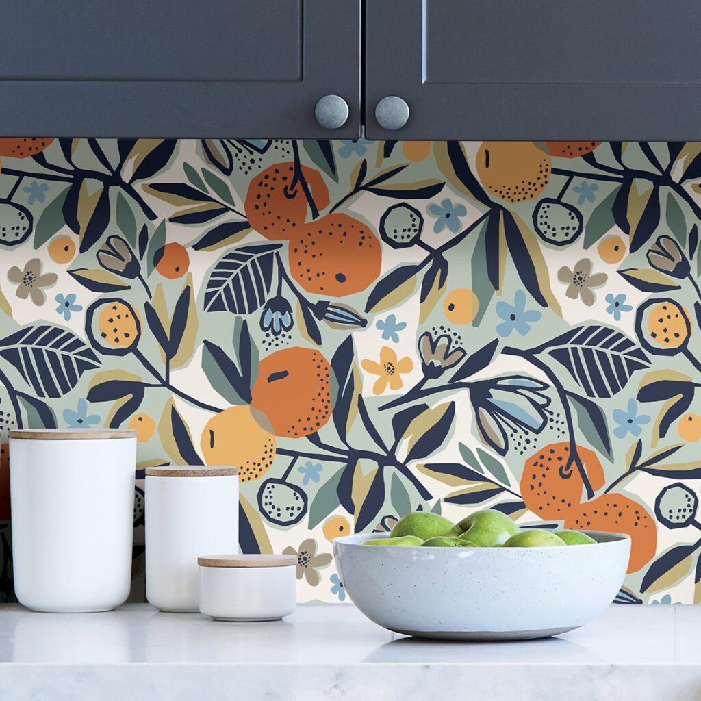 Retro-inspired fruit peel and stick wallpaper