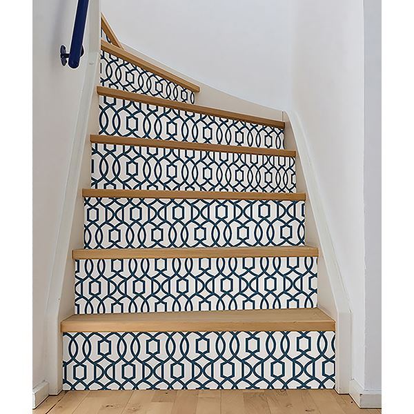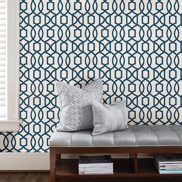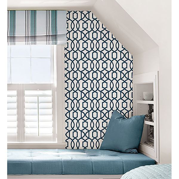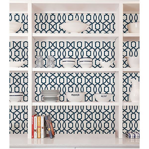 Chic and modern, this stylish trellis dazzles on walls. Bring a new look to your décor with this fabulous peel and stick wallpaper that is totally removable and will not damage walls. A beautiful white and navy canvas creates a perfect feature wall for any room big or small. Style the home of your dreams without the hassle of ordinary wallpaper with this fun decorating solution!