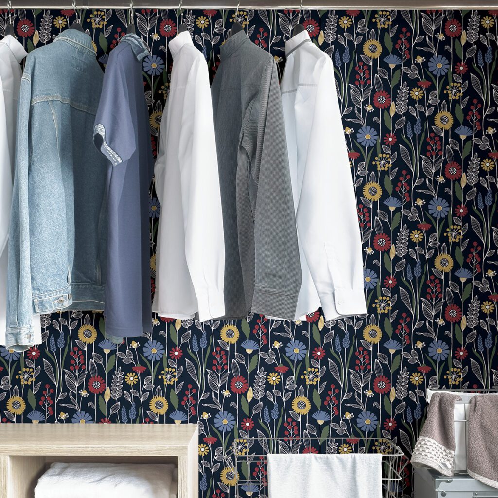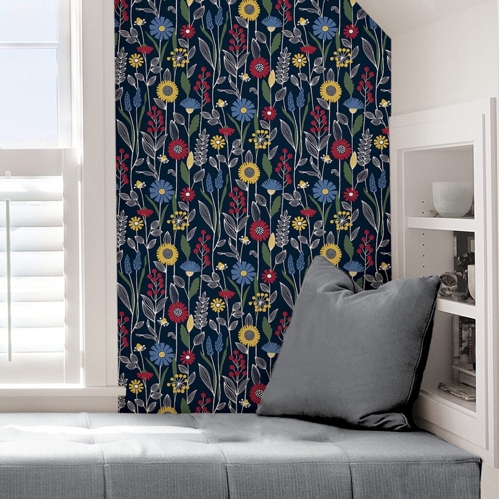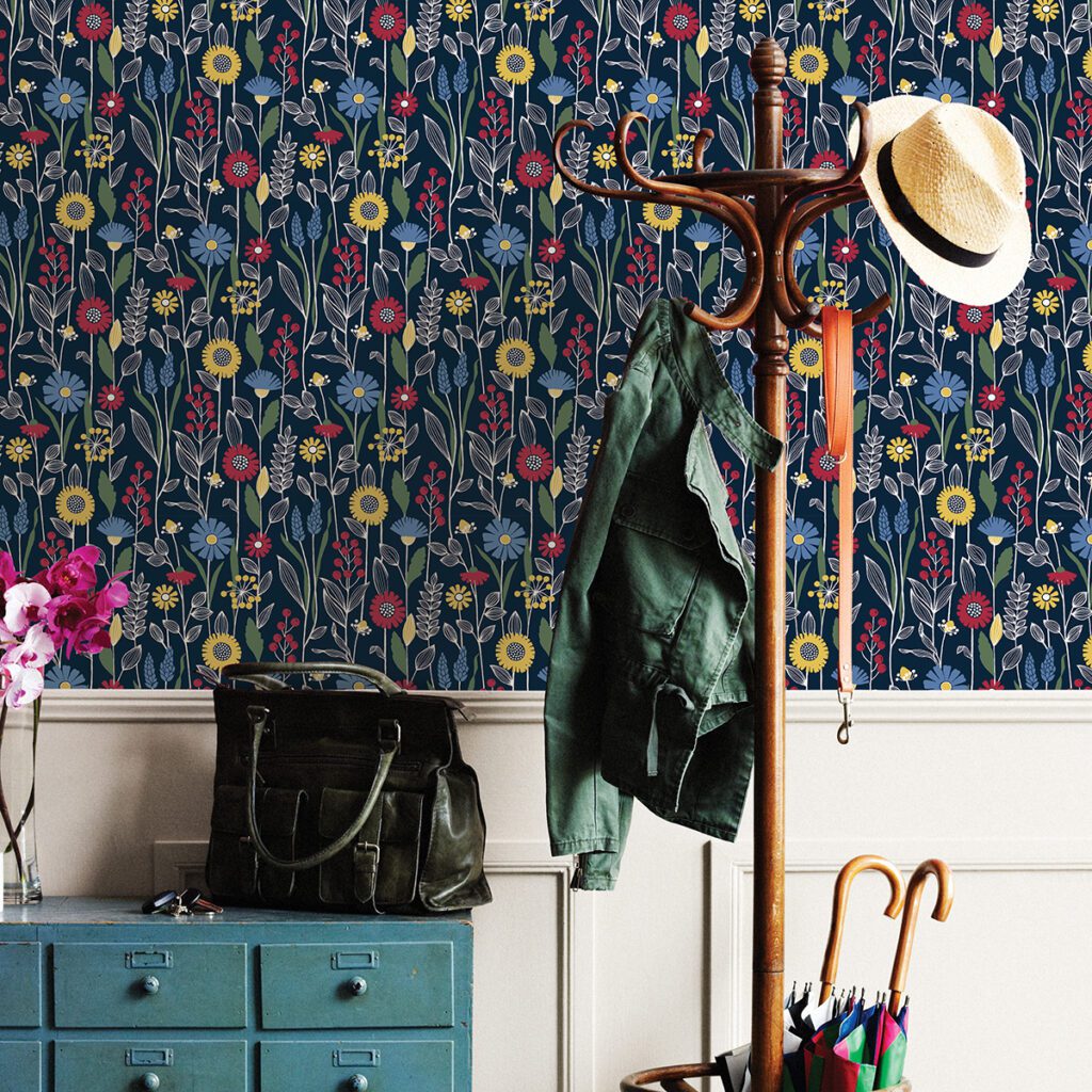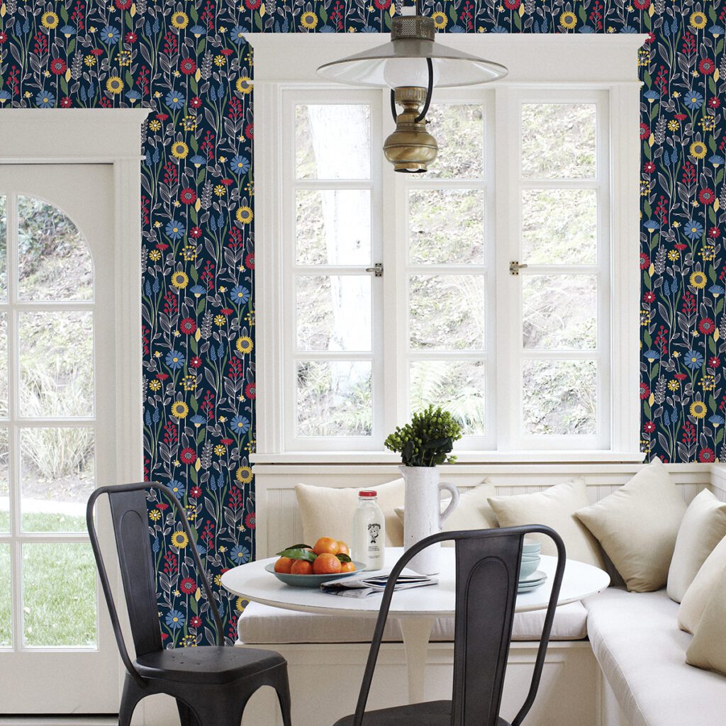 Navy eclectic style peel and stick wallpaper