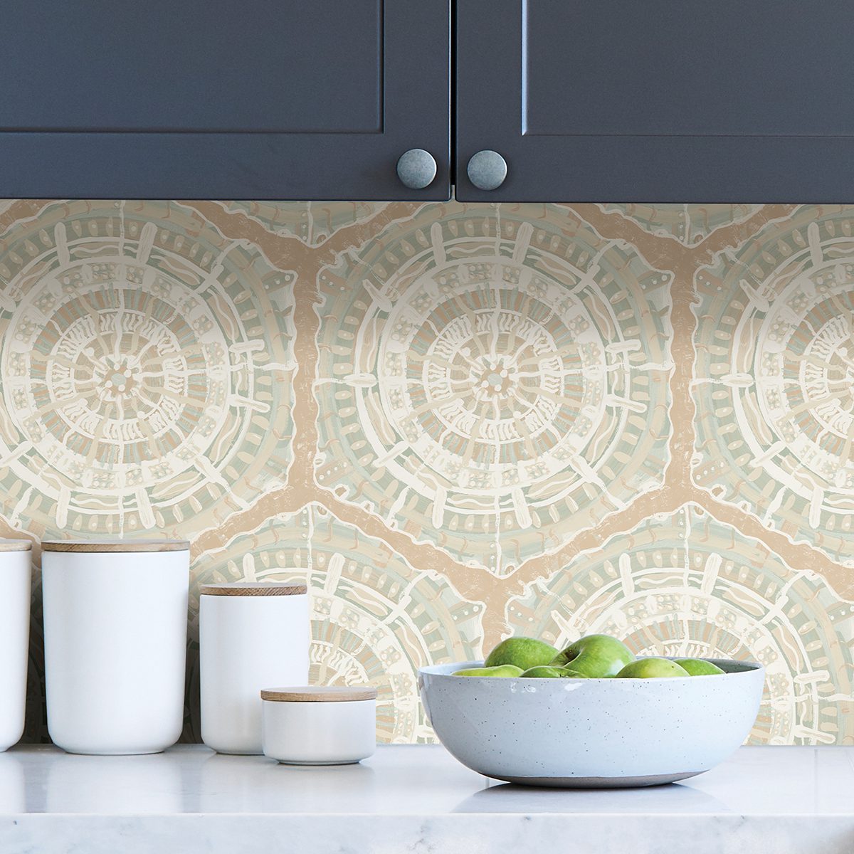 Geometric peel and stick wallpaper with bohemian flair by Lisa Whittington
