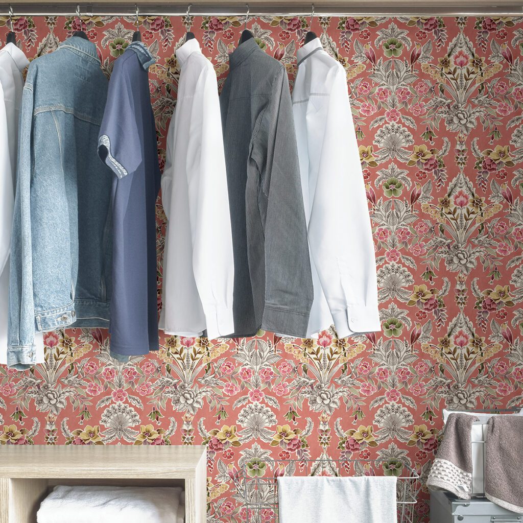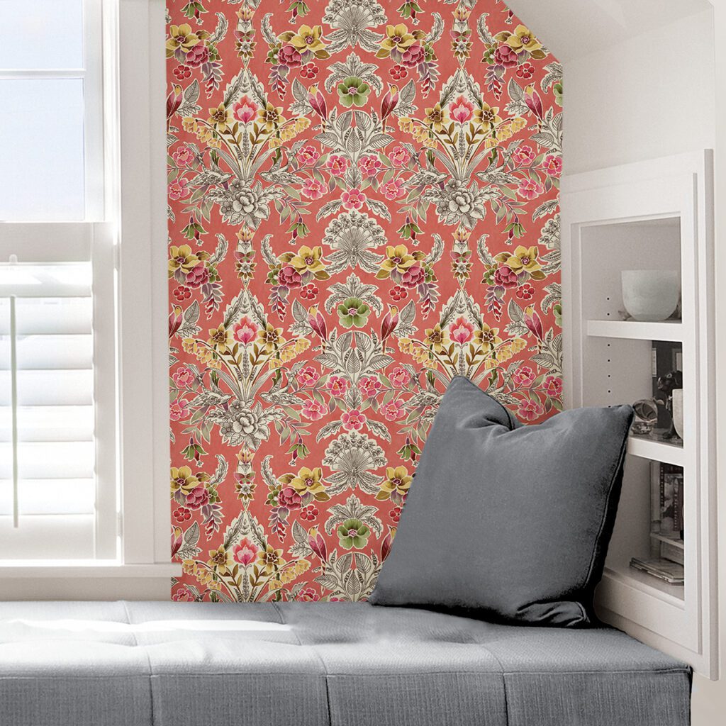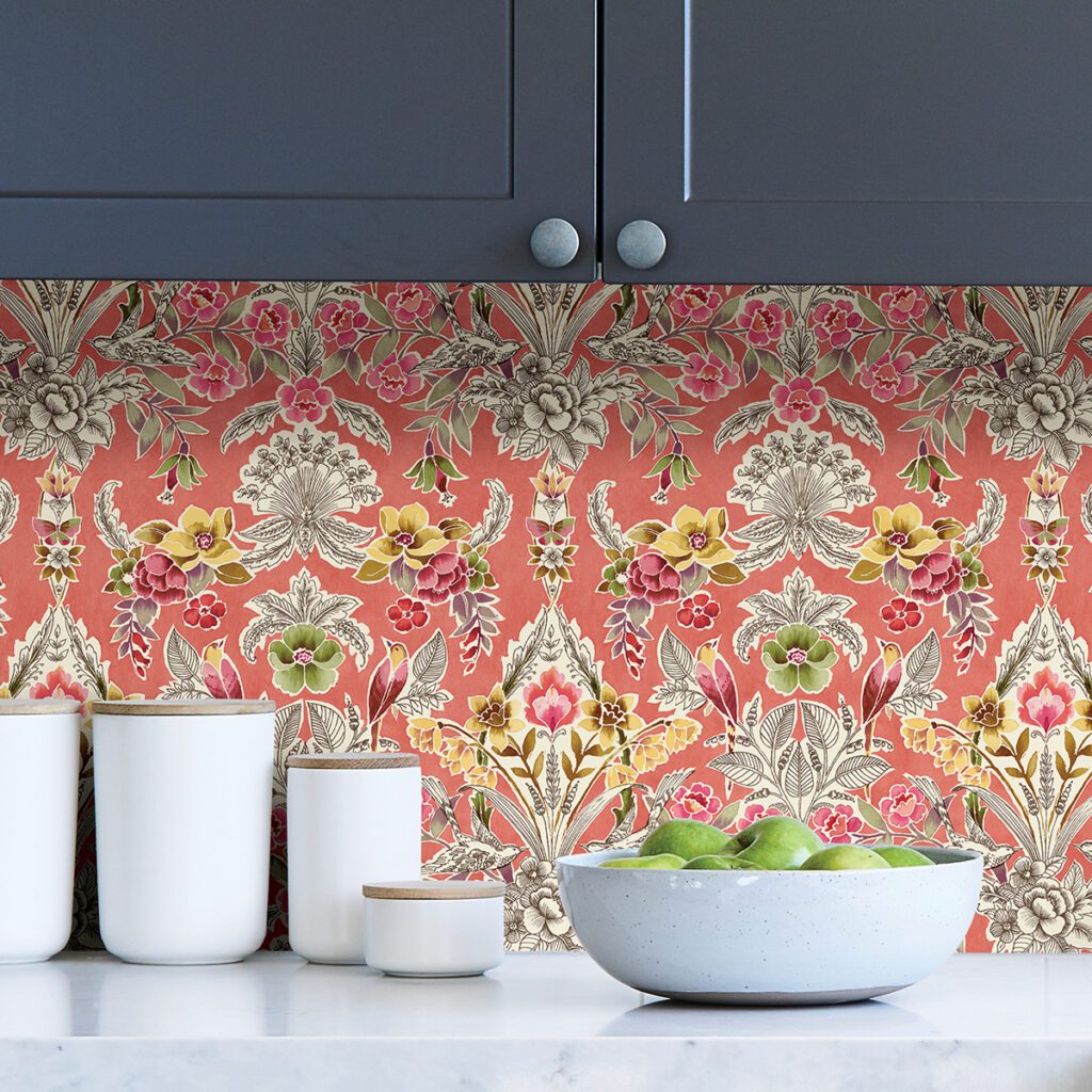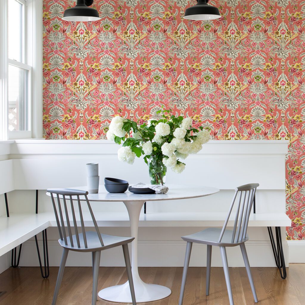 Colourful peach floral peel and stick wallpaper