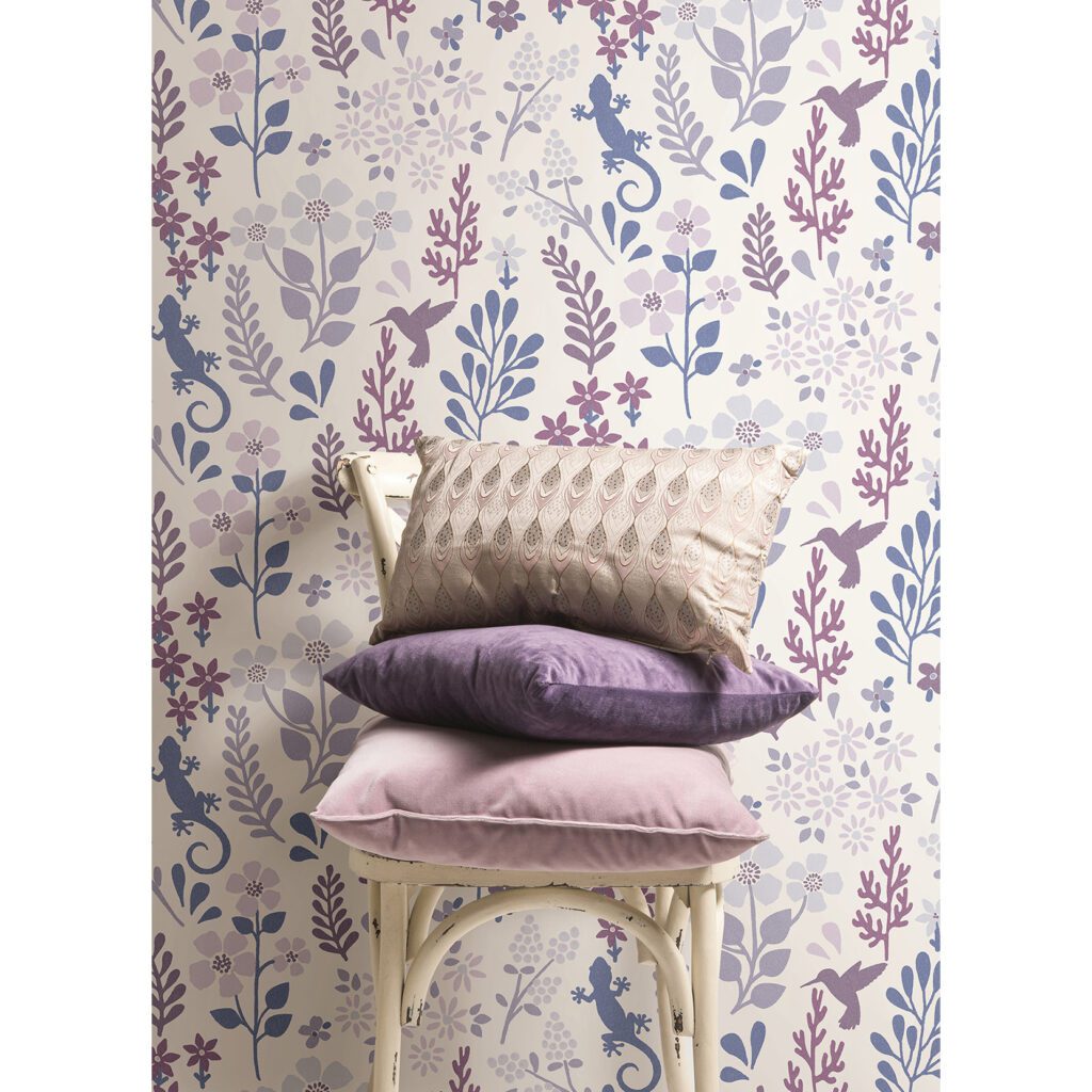 Blue and purple peel and stick wallpaper with floral accents inspired by Pantone’s 2022 Coloured of the Year