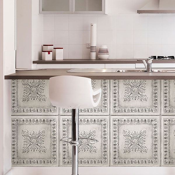 This reclaimed tin tile peel and stick wallpaper is the perfect way to give your space a vintage flair. The print was created from an actual vintage tile, replicating the natural distressing that years of life produced. The white finish is bright and versatile.