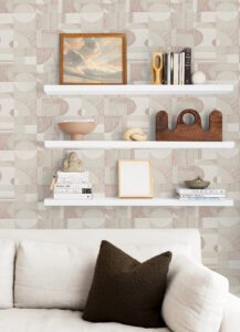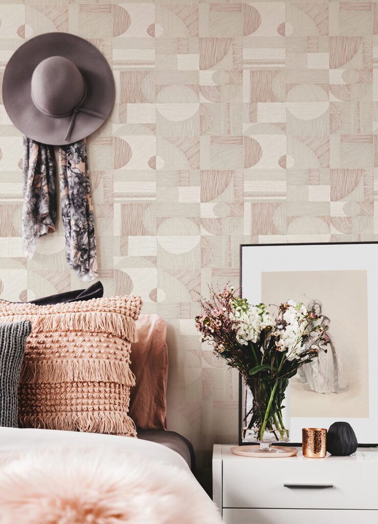 Rose gold peel and stick wallpaper featuring a modern geometric design