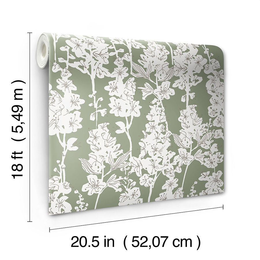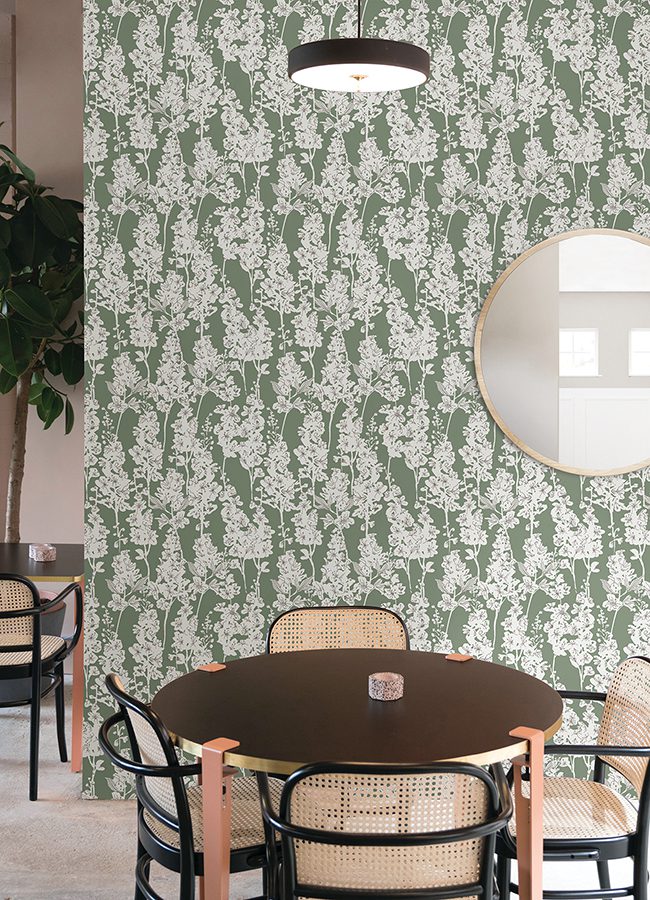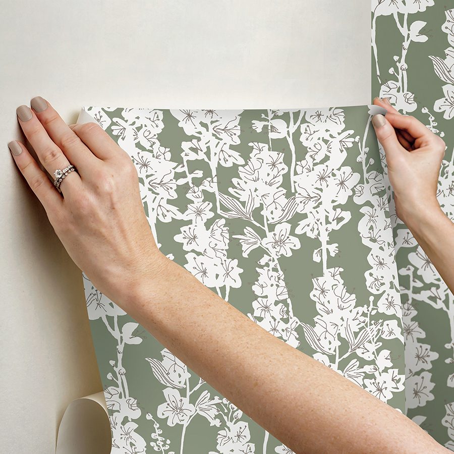 Cheerful green floral peel and stick NuWallpaper designed by Dylan M.