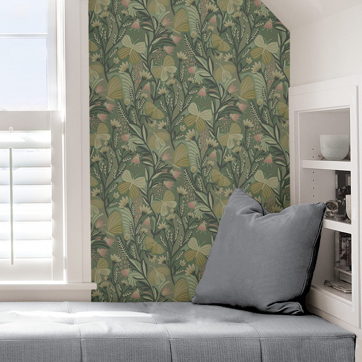 Pastel woodland and butterfly themed peel and stick wallpaper