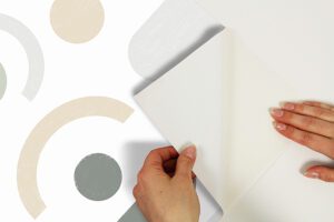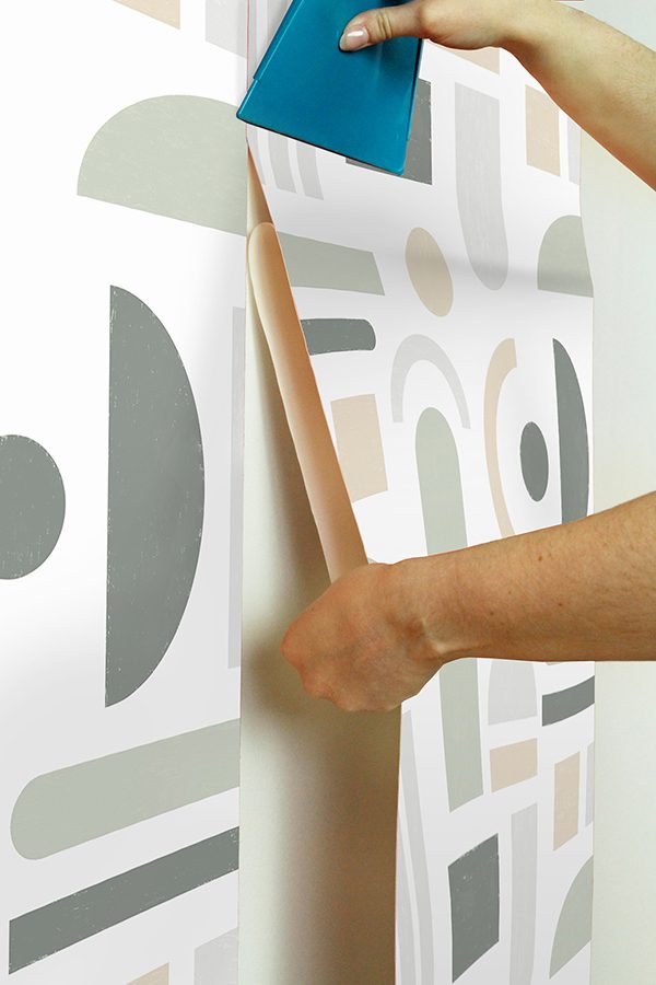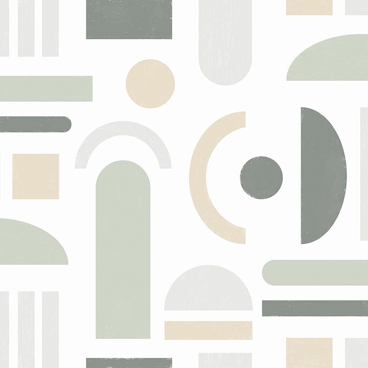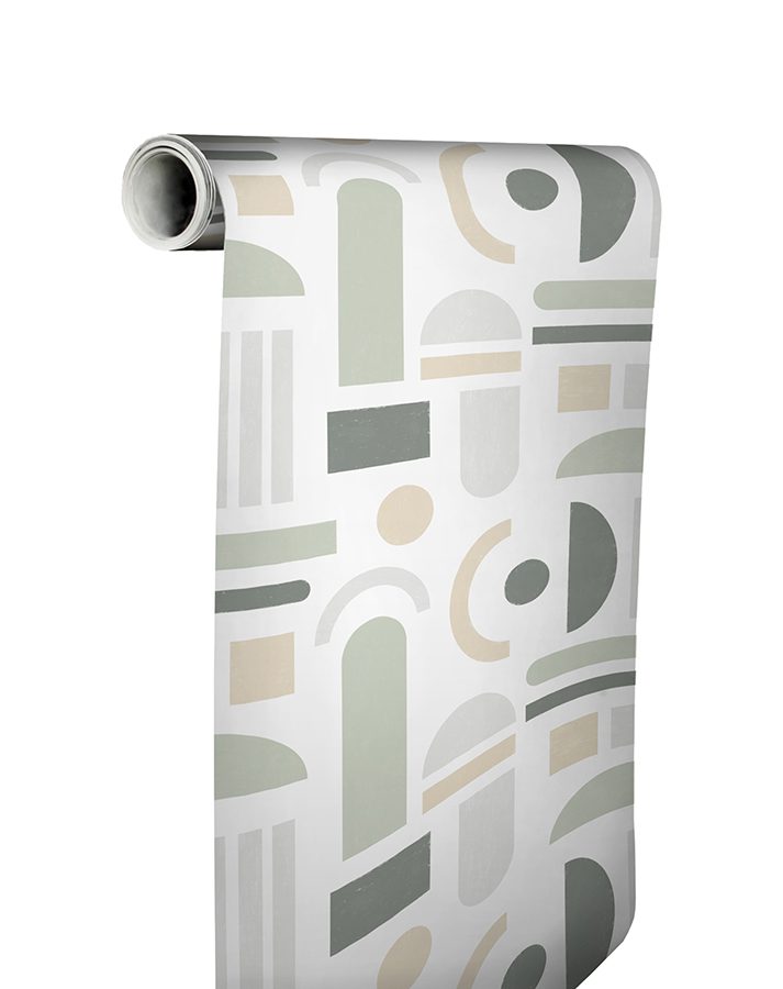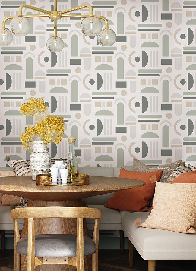 This geometric peel and stick wallpaper combines the best of the day’s current design trends: soothing green hues and subtle, retro flair
