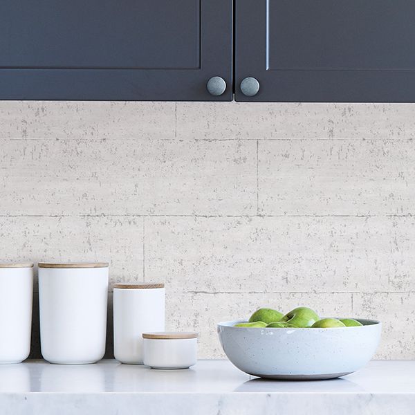 A white concrete inspired design from the Scott Living Self Adhesive Wallpaper collection