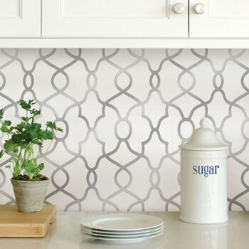 A silver trellis design from the NuWallpaper collection