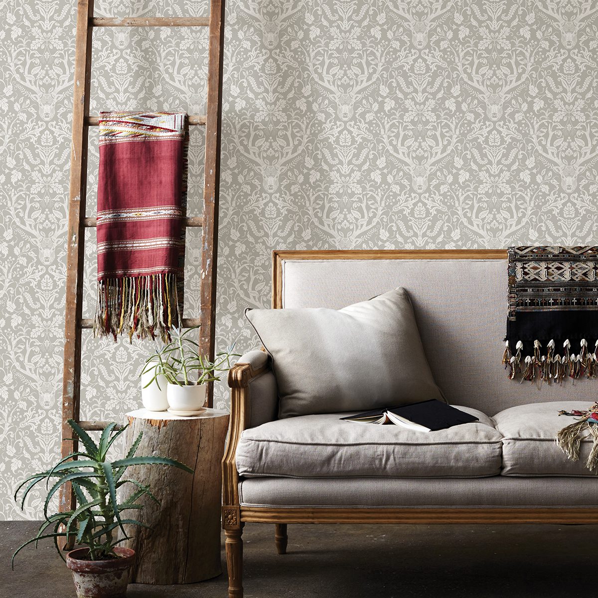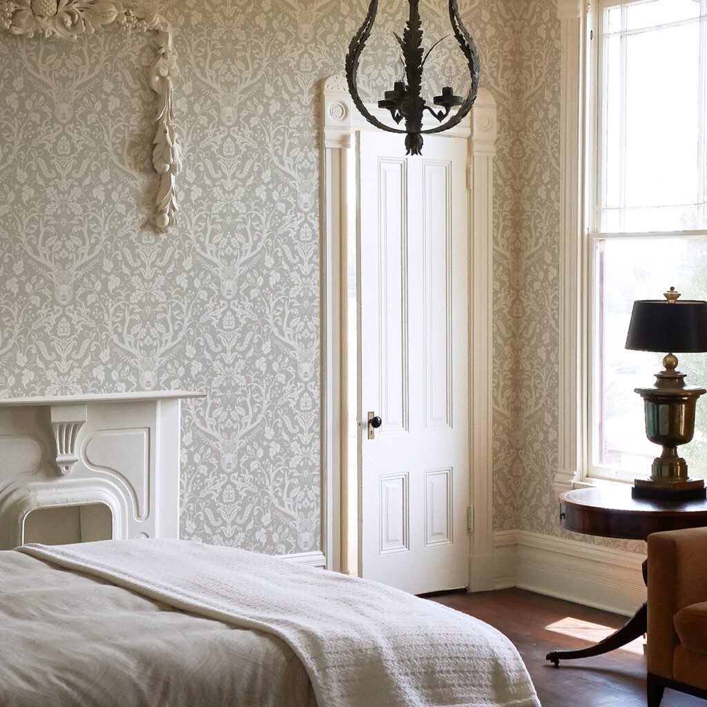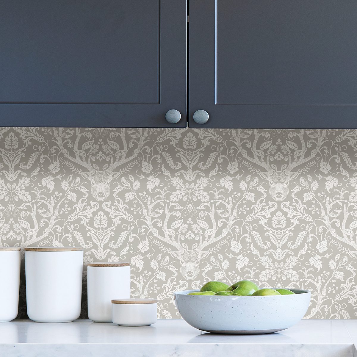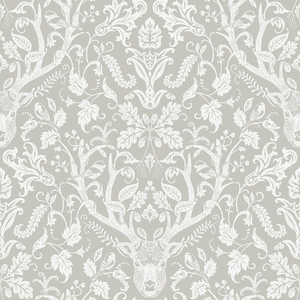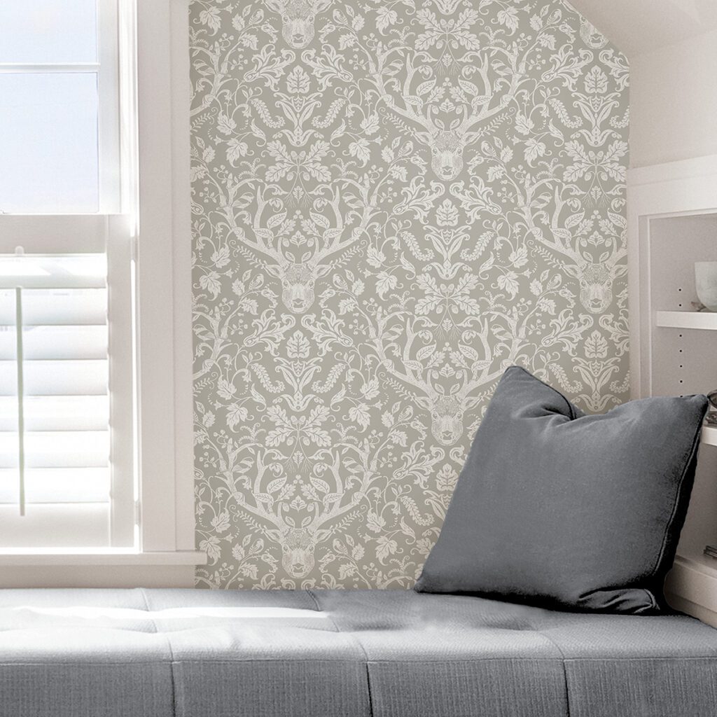 Scandinavian-inspired damask peel and stick wallpaper