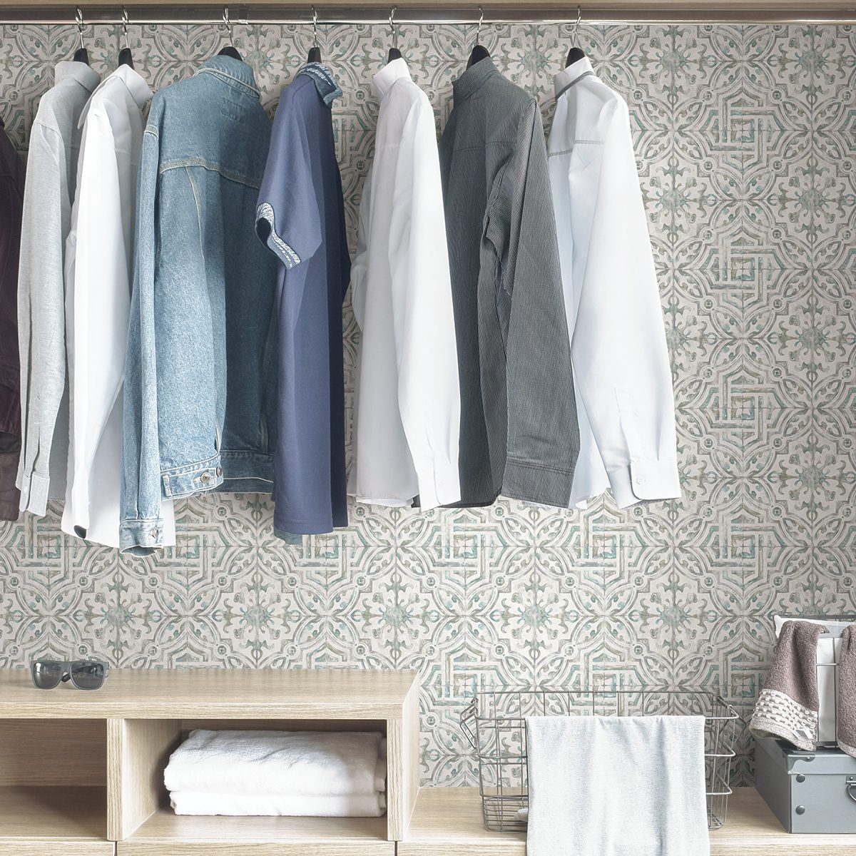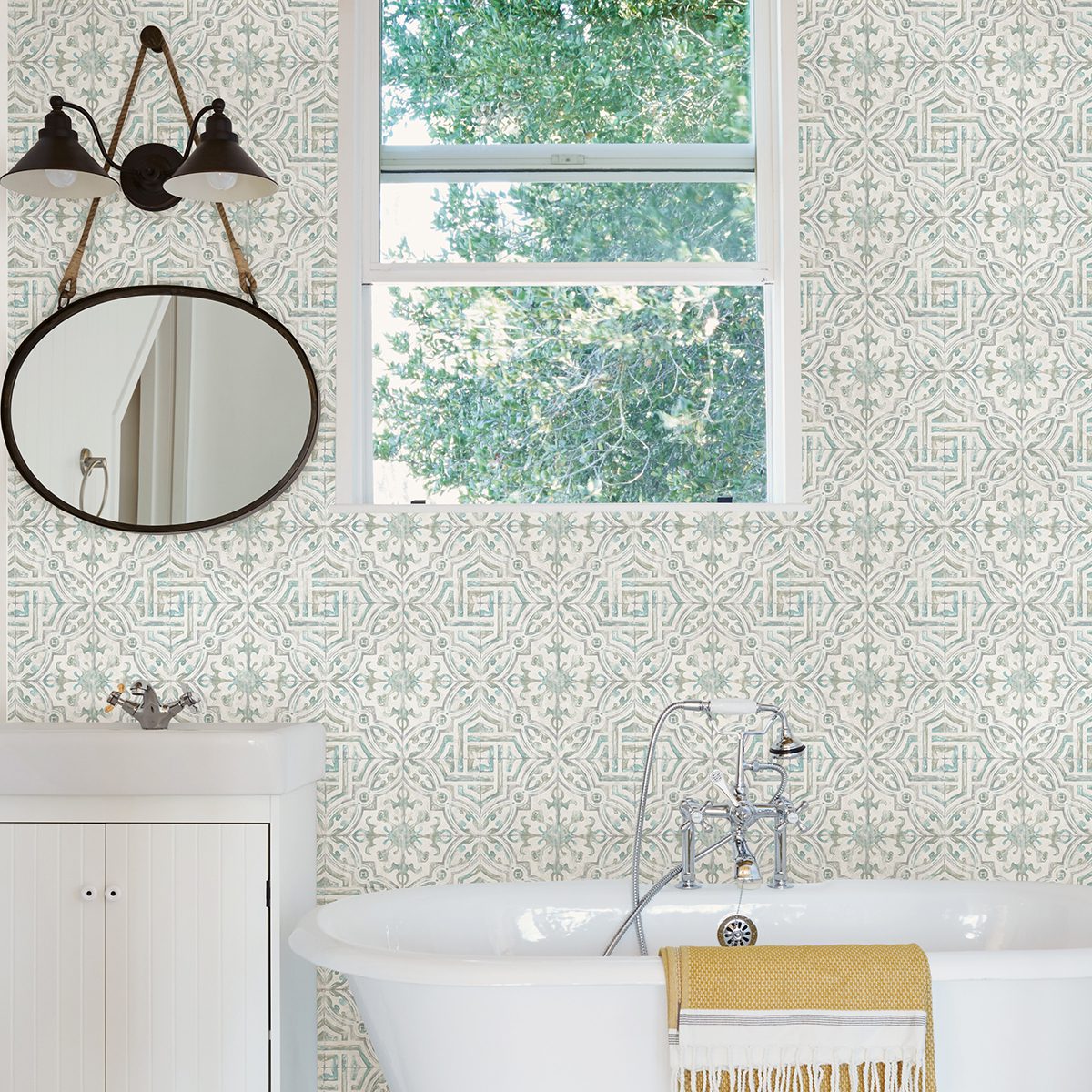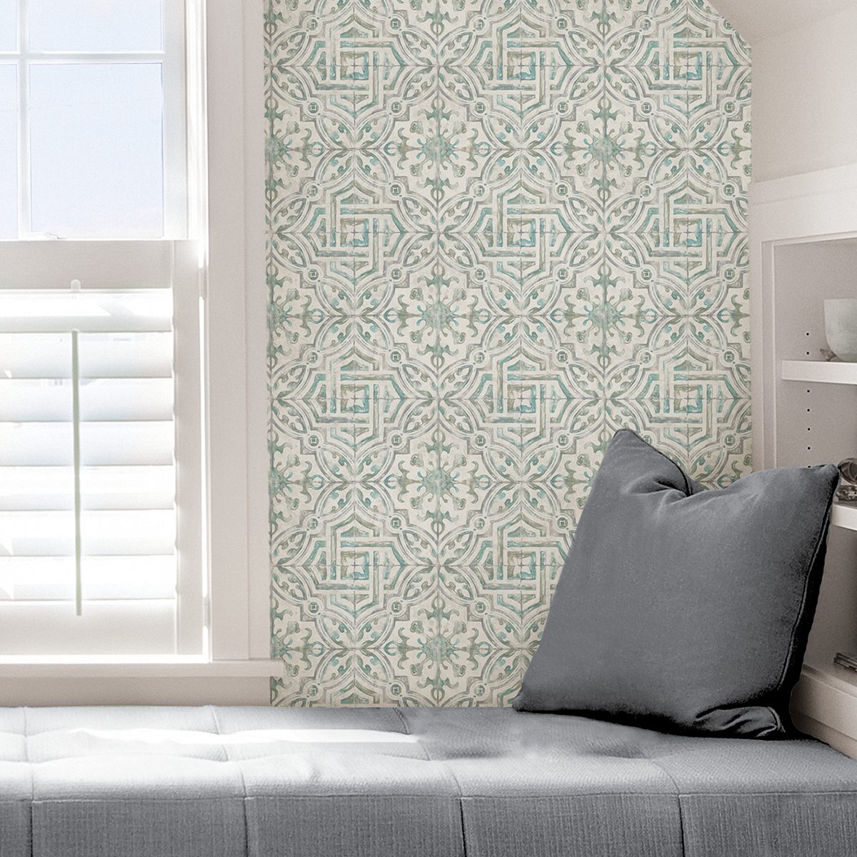 Peel and stick wallpaper featuring a Spanish tile inspired look