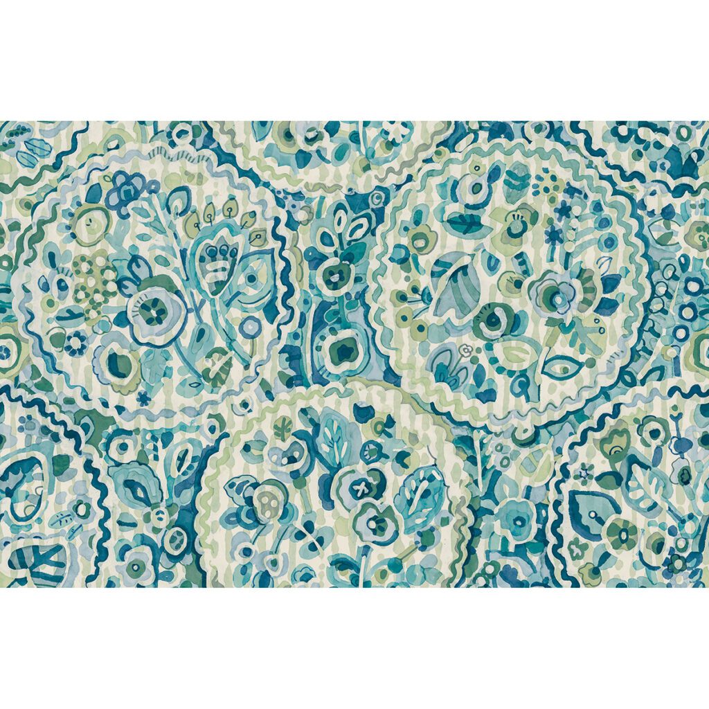 Teal floral peel and stick wallpaper by Caroline et Bettina with a hand-painted style