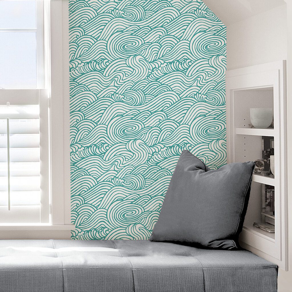 Aqua wave peel and stick wallpaper