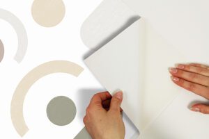 Enjoy an artistic and retro take on geometric accents with this funky peel and stick wallpaper