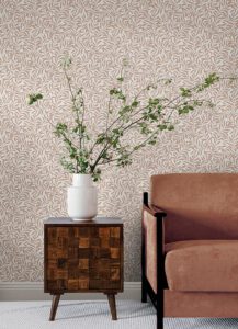 Terracotta peel and stick wallpaper with botanical accents