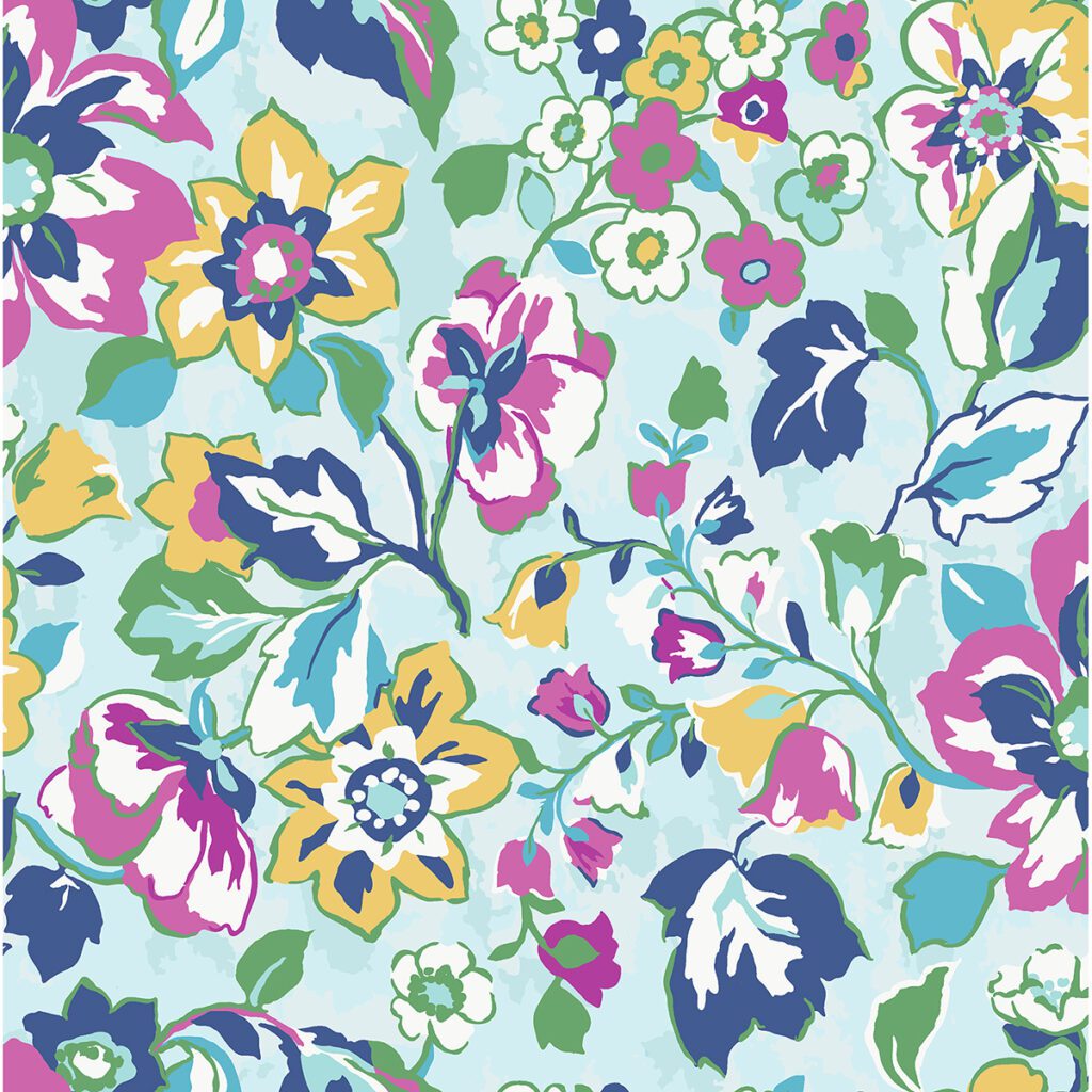 Cheerful and colourful floral peel and stick wallpaper by Vera Bradley for the maximalist-lover