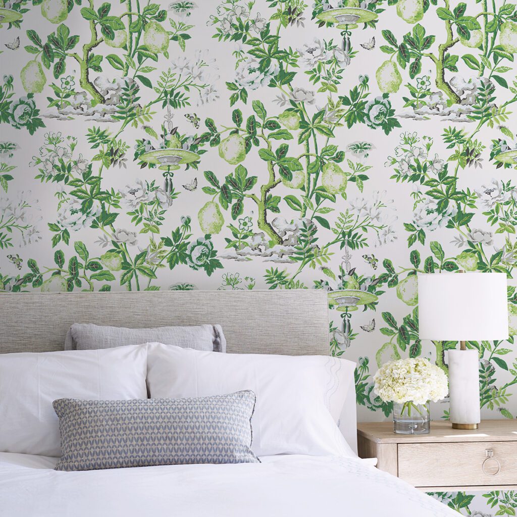 Blue floral Chinoiserie Signature Scalamandré Series peel and stick wallpaper by NuWallpaper