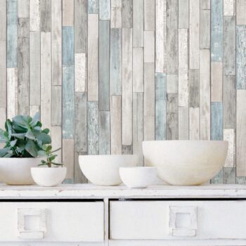 Weathered plank wallpaper with a coastal style