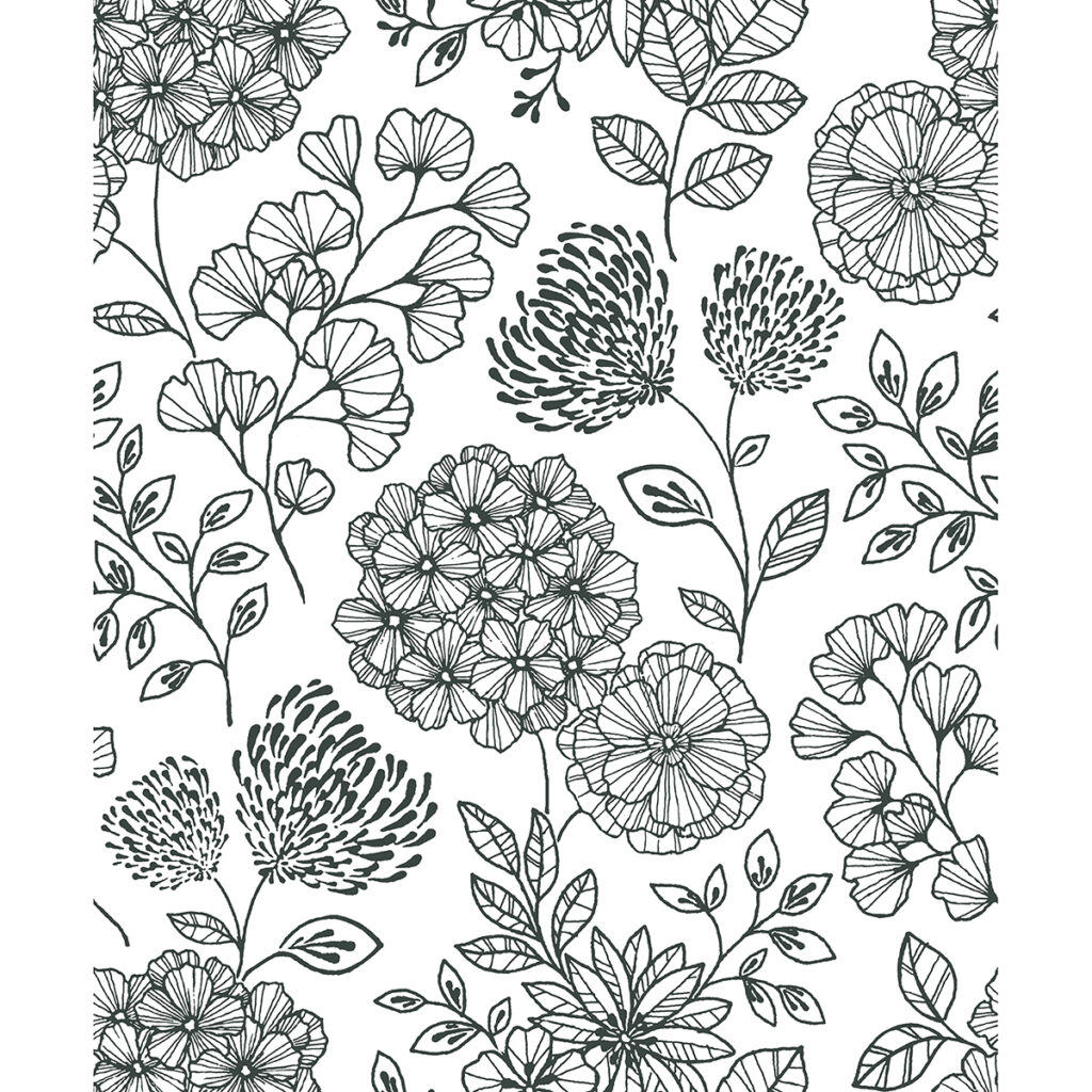 Enjoy modern charm with this delicate floral design. The crisply inked lines against a white backdrop add simple elegance to your home. Ada is an unpasted, non woven wallpaper.