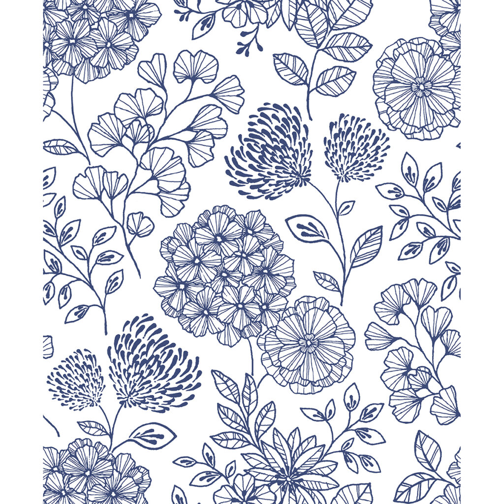 A classic blue-and-white color scheme and simple floral design bring modern charm to your home. The detailed yet delicate linework adds elegance to your interiors. Ada is an unpasted, non woven wallpaper.