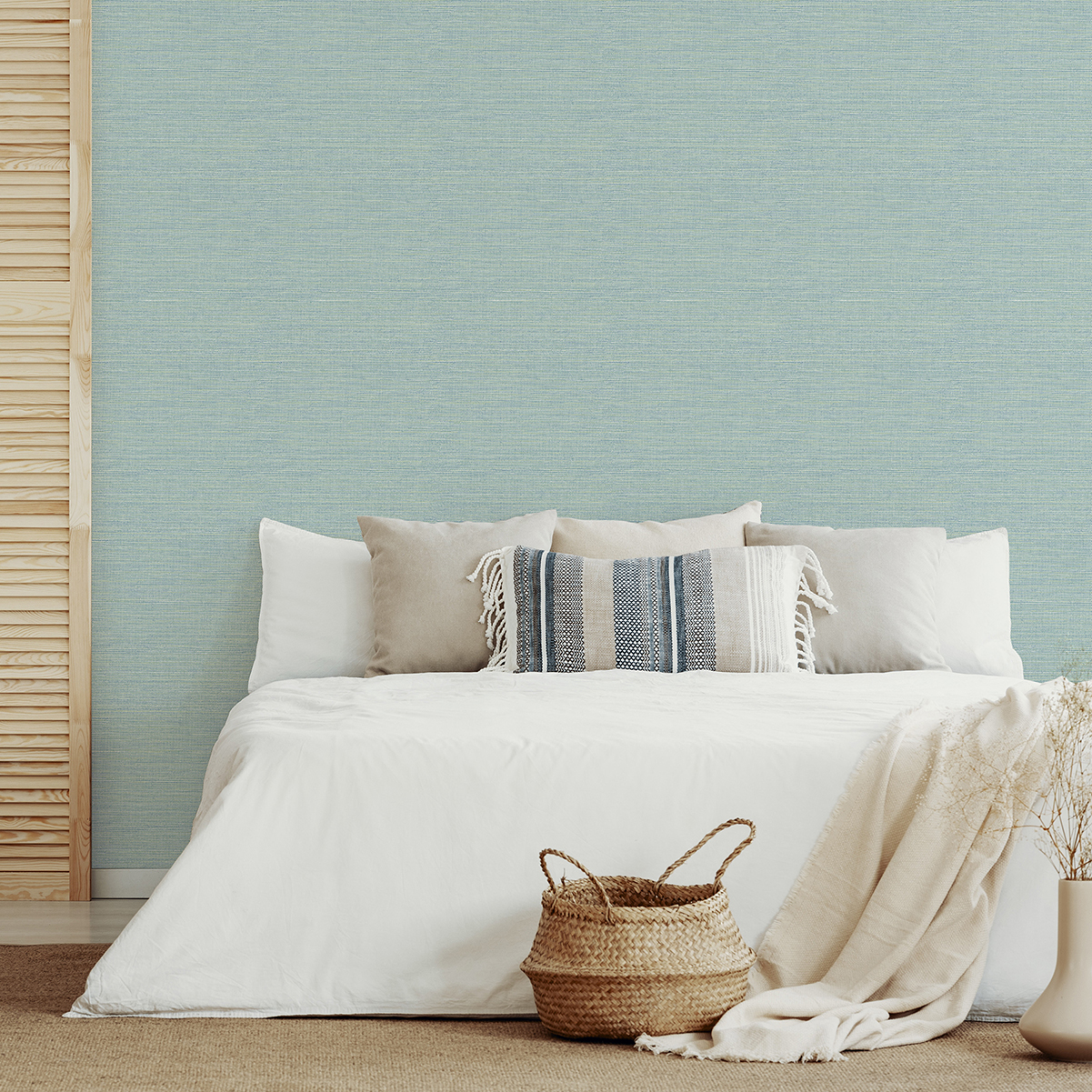 A blend of cool blues and greens make up this stylish faux grasscloth wallpaper. Raising inks provide texture throughout for subtle dimension and timeless appeal. Agave is an unpasted, non woven wallpaper.